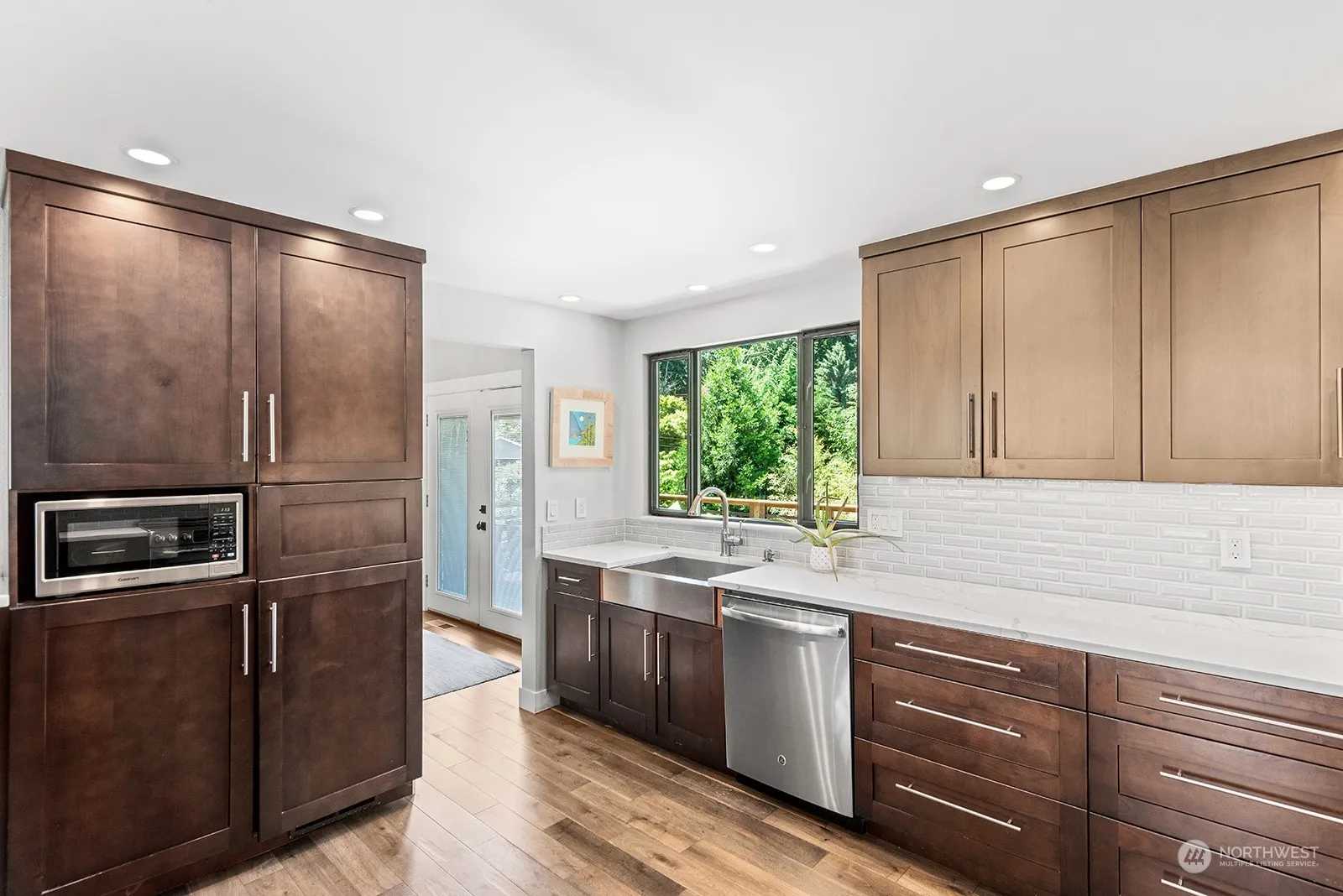 Welcome home to the coveted south end on Mercer Island- a freshly updated, move in ready 2,710sf four bedroom home perfectly sited a few blocks to trails, schools, shopping center, restaurants & country club. Home features include- hardwood flooring throughout, forced air heating and cooling, updated kitchen with stainless appliances. Primary suite with two additional bedroom, two bathrooms and office (could be converted back to 5th bedroom) on the main level, massive bonus room with wet bar & bedroom on the lower level. Great storage space throughout and oversized two car garage. Private west facing backyard boasts level lawn, large deck, covered patio and garden area- perfect for play and entertaining.