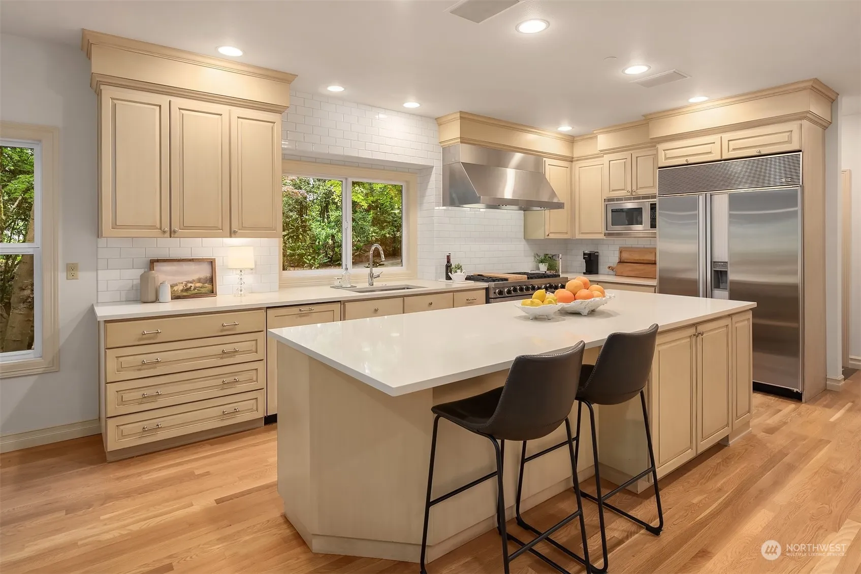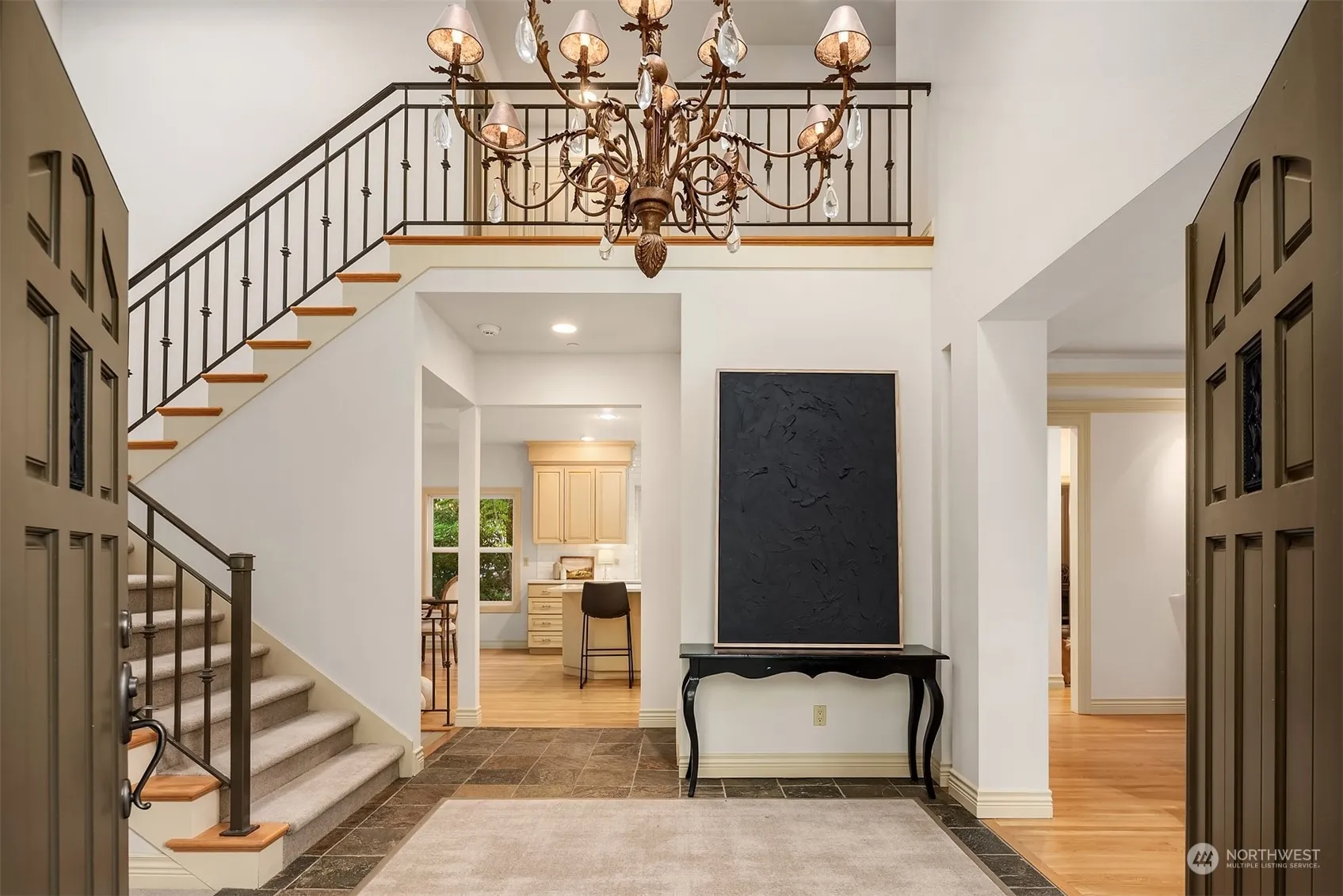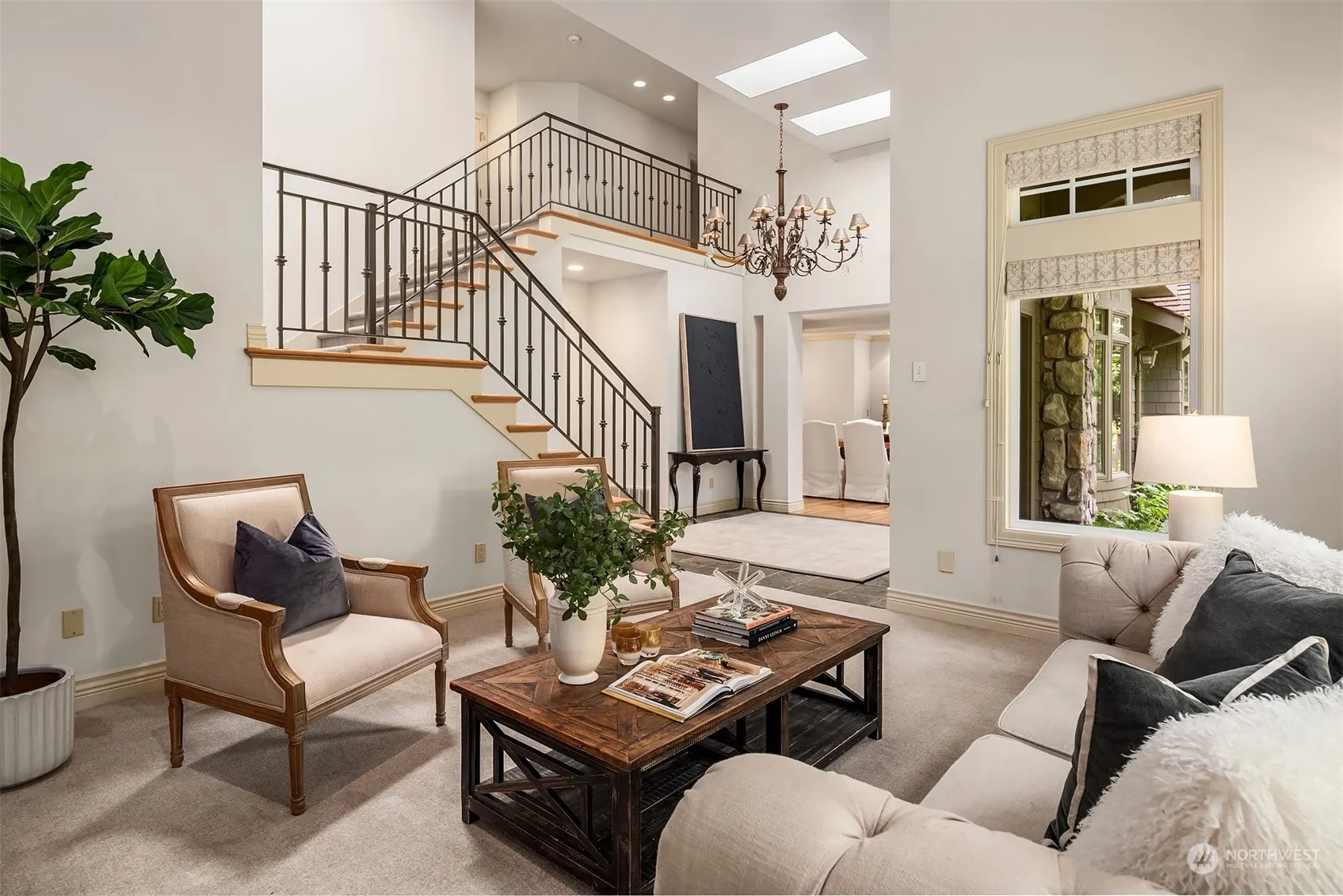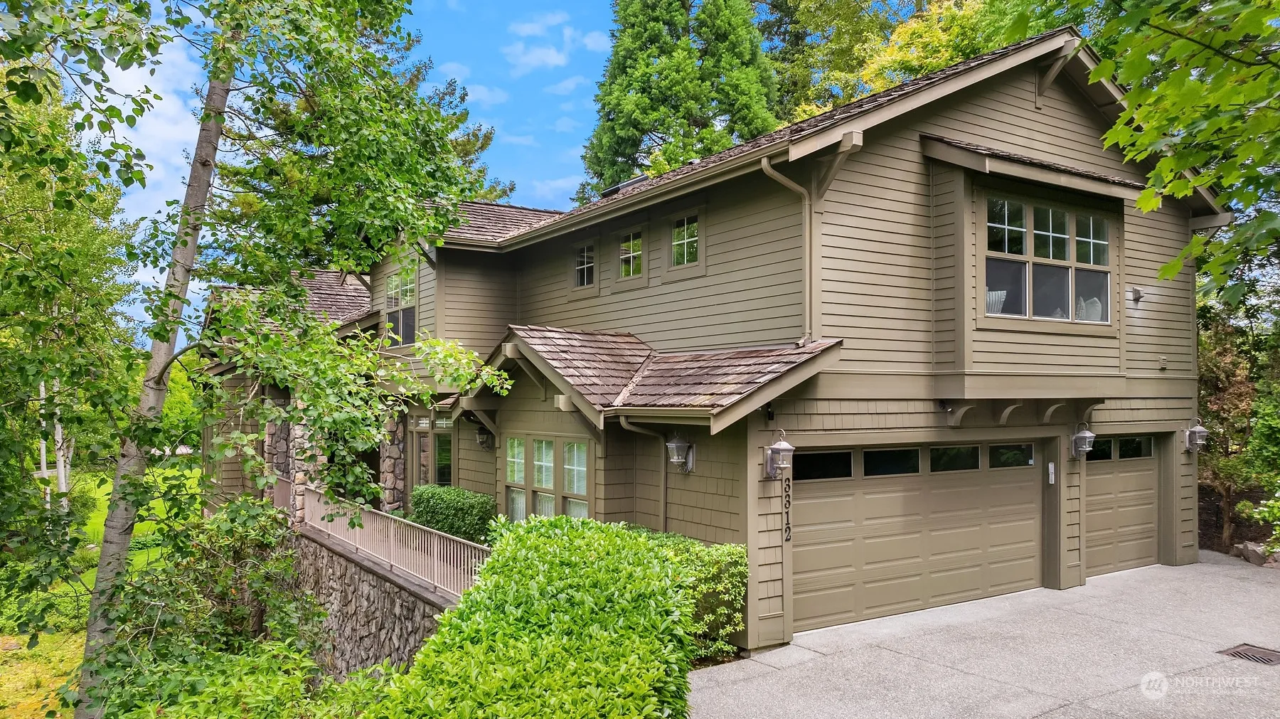 Perched in a private, verdant setting on the coveted north end of Mercer Island, this 5,000 square foot multi-generational home boasts soaring ceilings and expansive windows framing 16,000+ square feet of lush grounds. The spacious eat-in kitchen offers an adjacent great room with floor-to-ceiling stone fireplace. A desirable main-floor office is perfect for those working from home. On the upper level there are 4 large bedrooms including a lovely primary suite with 5-piece bath. A bonus room is hang-out central. The lower level offers two light-filled flex spaces ideal for guest suite, exercise room or an additional rec room. 3-car garage. Located in an ideal setting just minutes from the Island core, Bellevue & Seattle, and NW recreation.