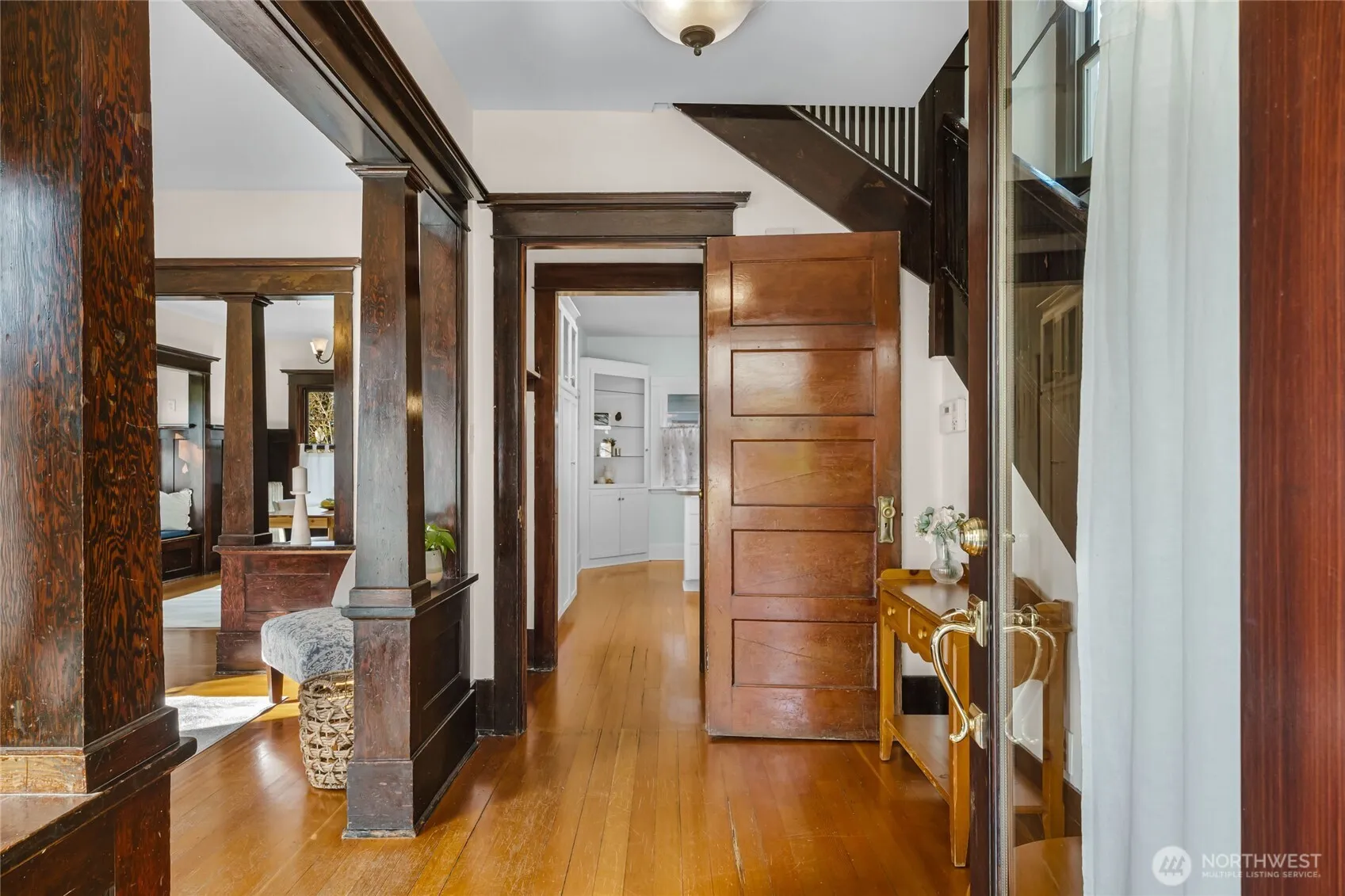 Charming Craftsman in Tacoma’s sought-after 6th Ave Business District! Nestled on a private, low-maintenance lot, this home features a welcoming front porch, high ceilings, a beautiful fir staircase, and warm fir hardwood floors. The spacious living and dining rooms showcase classic Craftsman details with rich wainscoting and pillars. Updated kitchen with peninsula and cozy eating nook. Upstairs offers three generously sized bedrooms with large closets—rare for a home of this era. Full unfinished basement provides excellent storage or future potential. Enjoy the gardener’s paradise yard with yellow roses, clematis, jasmine, and a secluded brick patio perfect for summer evenings. Walk to restaurants, shops, UPS, and more!