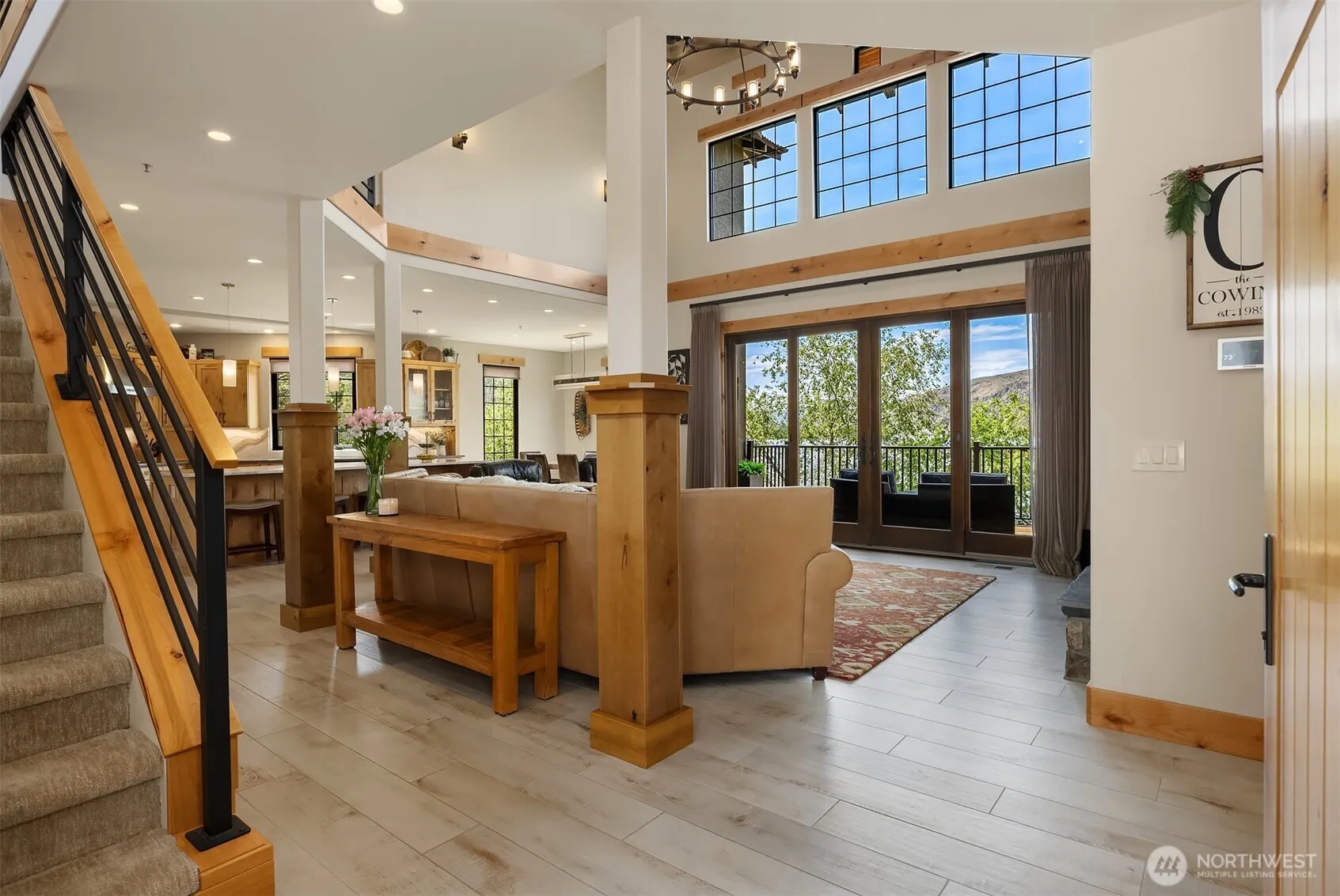 Just in time for summer 2026! Gorgeous Columbia Point Lane Waterfront living in a unique 10 home community only 7 miles from Chelan! Private beach area and stunning River views. Spectacular totally updated custom home loaded with quality finishes. Main floor primary with spa bath and tub, Grand Great Room kitchen with a floor to ceiling fireplace, dining area and sliders to view deck ideal for entertaining. This property is the ultimate getaway retreat or terrific for year-round living. Additional bedrooms up, one-Ensuite with 3/4 bath and kitchenette perfect for weekend guests. Lower-level Rec rm with wet bar, Gym/bonus room, large laundry room and main floor powder room. Community boat dock with slips. Sandy beach area with total privacy.