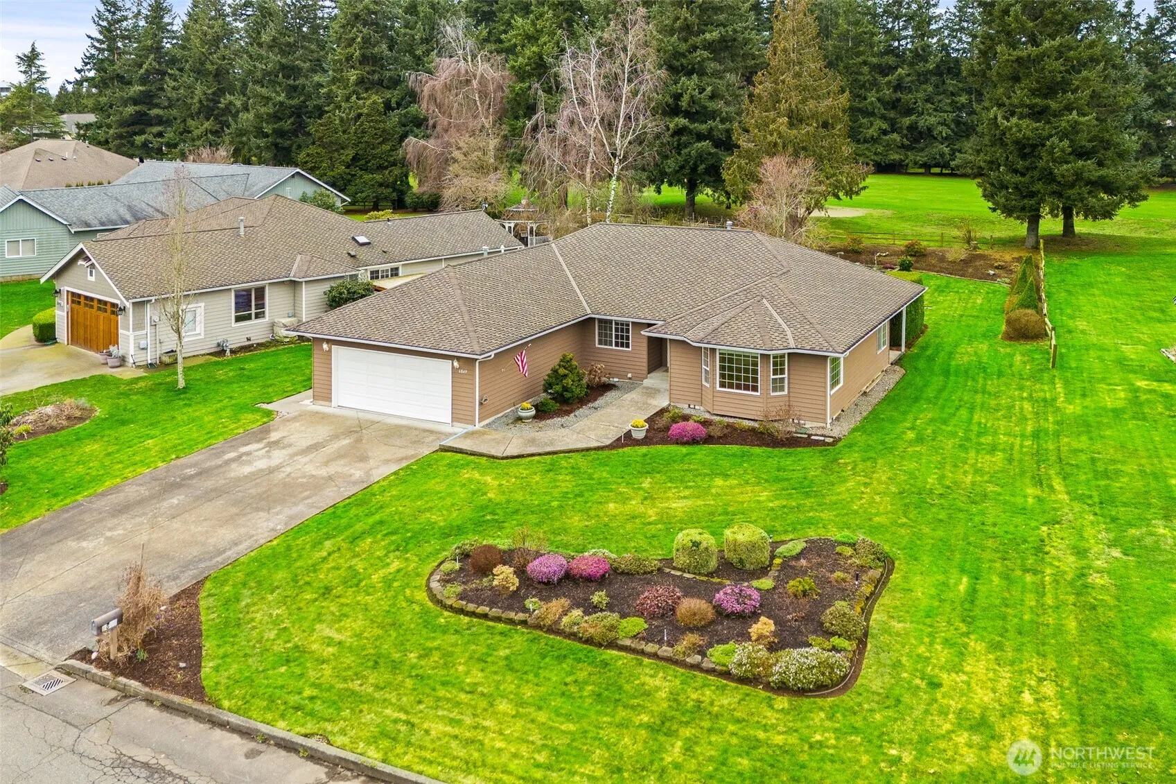 Coveted Raspberry Ridge golf course rambler home on the fairway! This beautifully maintained 3 bed/1.75 bath stairless residence offers effortless single level living with peaceful golf course views right from the backyard. Designed for comfort and easy accessibility, the home features a functional layout, extra living area, 2 car garage and abundant natural light. Step outside to a stunning back deck – perfect for relaxing, entertaining, or enjoying morning coffee while overlooking the manicured fairway. The professionally landscaped yard creates a private, park like setting. Located in the highly desirable Raspberry Ridge community, this home combines easy living with convenience, just minutes to schools, shopping, dining and easy access to Bellingham. Rare opportunity to own a golf course property offering low maintenance living and scenic surroundings.