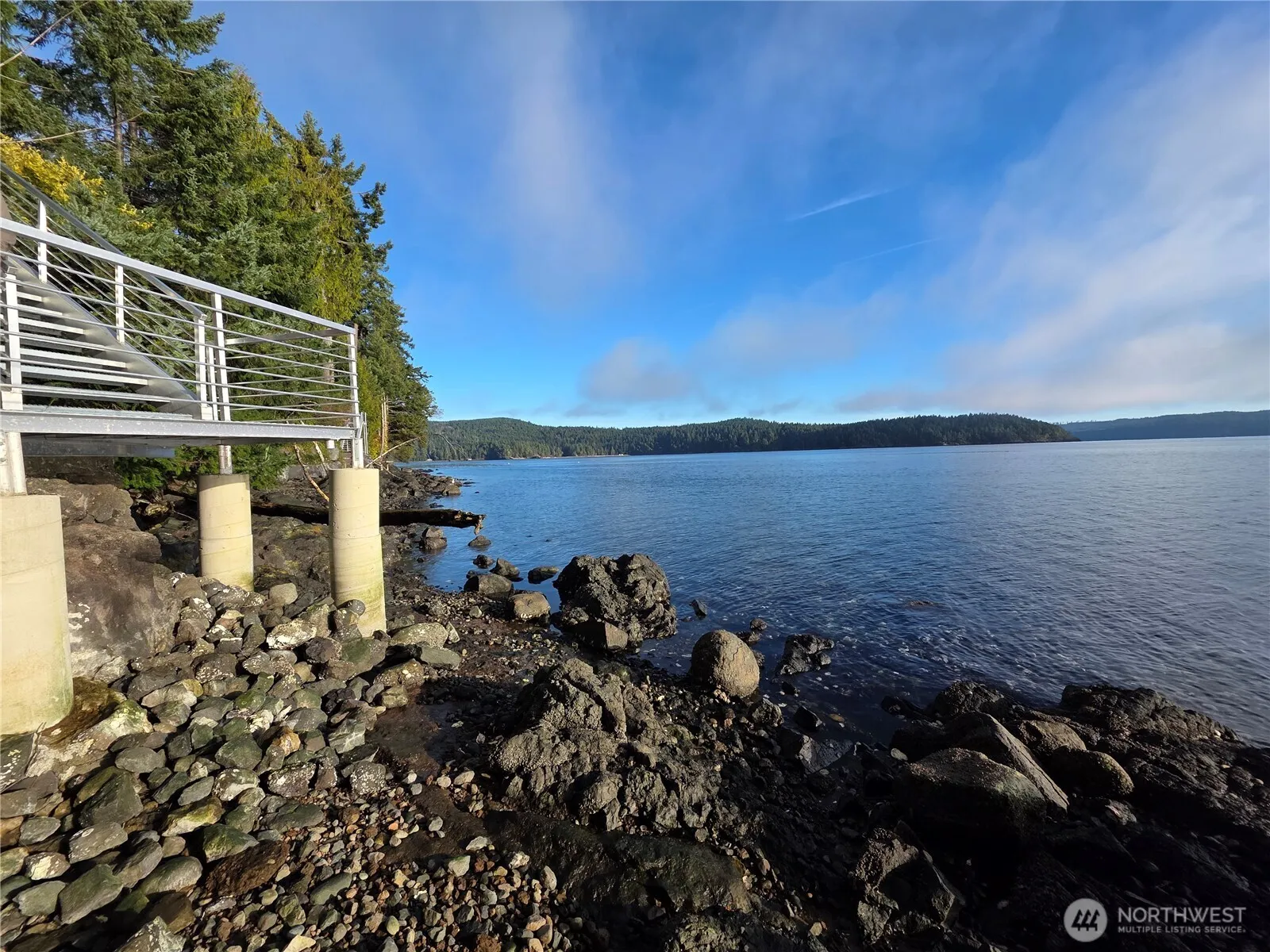 Charming waterfront home overlooking the entrance to Jackson Cove on Hood Canal. 3 bedroom, 2 bath, with large living room, kitchen, laundry room and inside stairs down to the 2-bay garage. Primary bedroom, living room, dining room, and kitchen all have stunning water views. Primary bedroom has an adjoining bathroom and a sliding glass door to step onto the patio. Listen to the sound of the waves while you sip your morning beverage and relax on the large patio or deck perched out over Hood Canal. Property also has a detached shed with sink, fridge, power, and a lovely view of canal perfect for outdoor entertaining. Large RV or boat parking with water hookup and an additional full RV hookup. An approximate 40 ft metal stairway to your private beach and owned tidelands for fresh shellfish, swimming, boating, etc. Located in a quiet neighborhood surrounded by evergreens. Only 7 miles away from Pleasant Harbor Marina and just a short drive to the Duckabush and Dosewallips Rivers and local hiking trails.
