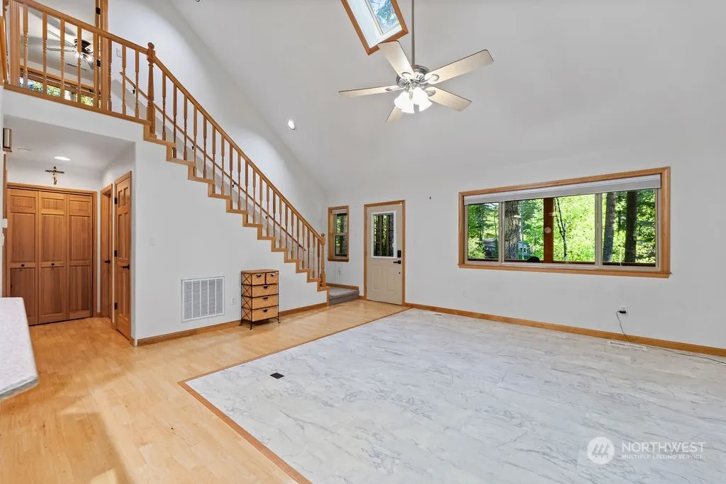 Absolutely gorgeous .38-acre riverfront cabin on the East Fork of the Lewis River. This 3 bed, 2 bath home features soaring ceilings, hardwood floors, and a river rock fireplace. Enjoy stainless steel appliances in the kitchen and a large primary suite with its own deck. Outside you’ll find a huge covered deck, a detached 3-car garage, and an oversized lot with a beautiful trail with just a few steps that leads you to the river. A truly one-of-a-kind home!