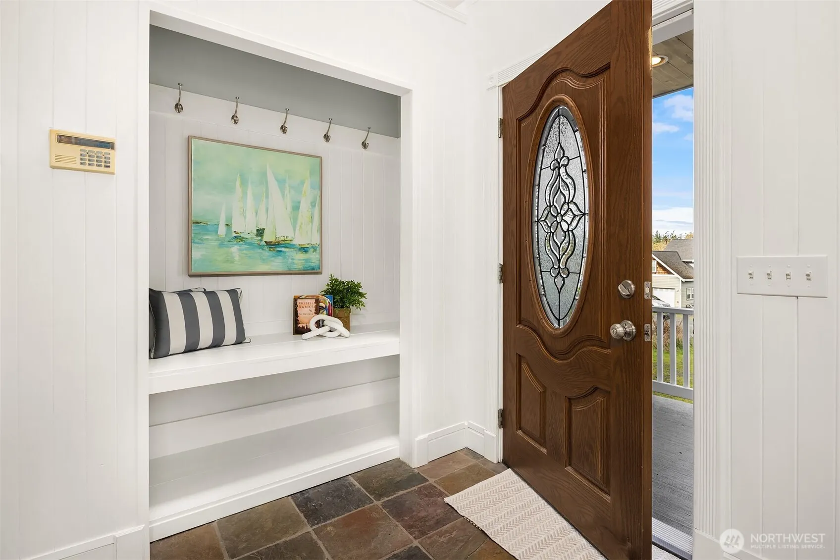 A standout in the Holmes Harbor community. This 1,828 sq ft Cape Cod-style home has been freshly painted inside and offers views of the harbor, 10th hole, and mountains from a quiet cul-de-sac setting.The two-story layout features vaulted ceilings, skylights, French doors, and two fireplaces — details that make the space feel both open and comfortable. The kitchen is equipped with professional-grade appliances, a propane stove, and a walk-in pantry. The primary suite includes a jetted tub, walk-in closet, and private bath. A main floor flex room offers the possibility of a third bedroom. A loft, family room, and wet bar add further flexibility for how you use the space.The deck off the back is where the views really shine. Metal roof, wood exterior, slate flooring, and quality finishes throughout. Community water and sewer, high-speed internet available, South Whidbey School District.