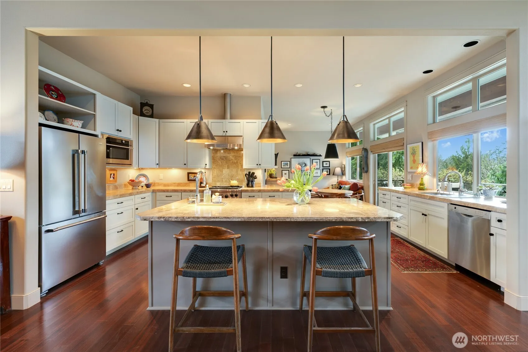 Step inside and feel it instantly—that elevated sense of home where design and comfort meet in all the right ways. This home is in the Sought After White Horse Community of Kingston. The flow is seamless—each space unfolds into the next with intention. It’s the kind of layout that just lives well. Custom designer details are woven throughout, subtly elevating every room and highlighting the home’s refined architecture. Vaulted ceilings, walls of windows and quality natural materials wrap the interiors in a warm elegance. At the heart of the home, a luxe gourmet kitchen anchors the living spaces. The primary suite feels like its own private escape. The ensuite bath is spa-inspired, featuring a striking stone shower and a generous walk-in closet that brings luxury to your every day. A second bedroom with its own ¾ ensuite offers comfort and privacy. The light-filled den, complete with built-ins—flexes easily as a home office or third bedroom. Outdoors, the setting transforms into a sanctuary. Professionally designed landscaping by renowned Elandan Gardens creates a sense of privacy and tranquility. A large west-facing deck becomes the stage for golden sunset evenings and effortless entertaining. This is more than a home—it’s a refined retreat designed to be lived in, enjoyed, and remembered. Location is Perfect, Close to ferries and trails. High speed Ferry goes directly to Downtown Seattle.