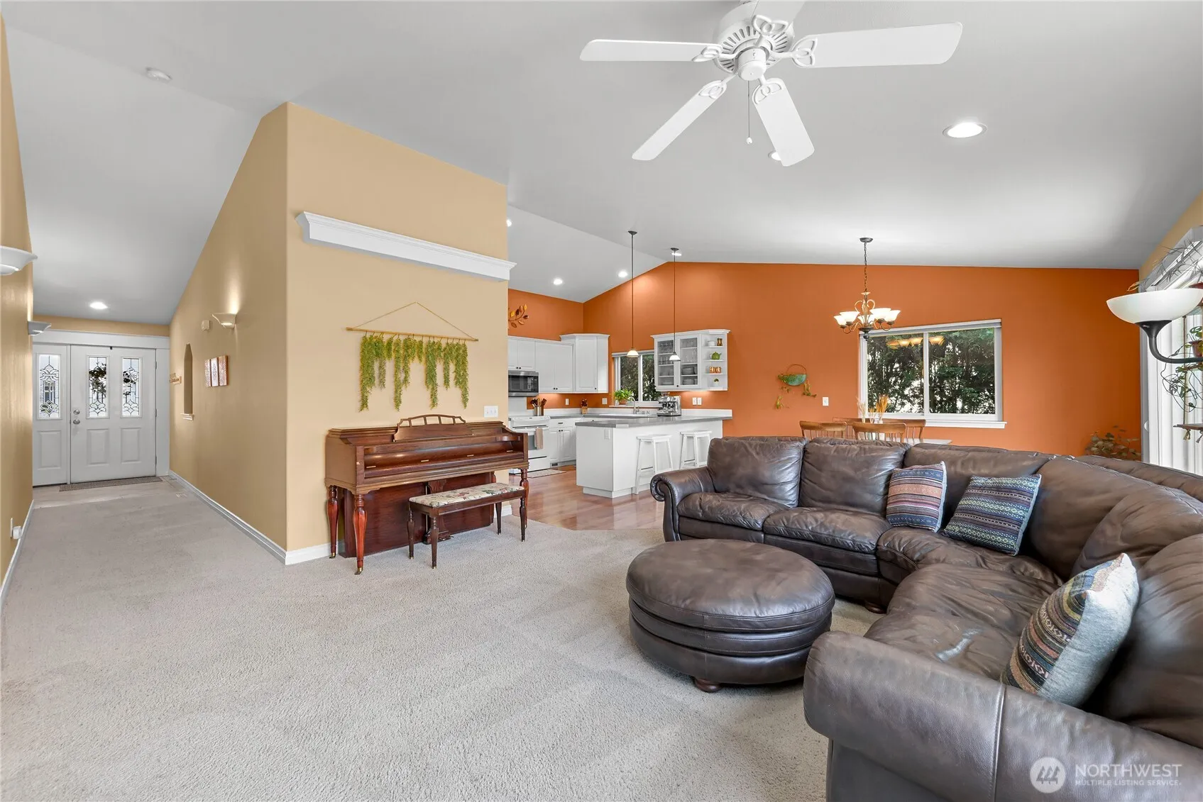 Ideal Lynden location for this very well kept single level home featuring an open layout, flooded with light, and beautiful fenced backyard with large deck. Vaulted ceilings and large windows make the main living space bright and open, flowing easily between the living room, dining area, and kitchen with eating bar. Nice primary with ensuite bath, and a walk-in closet, while two additional bedrooms offer flexibility for guests, office, or lifestyle needs. Outdoors, the spacious backyard provides room to relax, garden, or play, with a deck perfectly positioned to enjoy the sun and views of Mount Baker. Conveniently located near Bender Fields and nearby trails, this home also offers easy access to outdoor space and recreation. With a two-car garage and a layout designed for simplicity and comfort, this home is both practical and inviting.