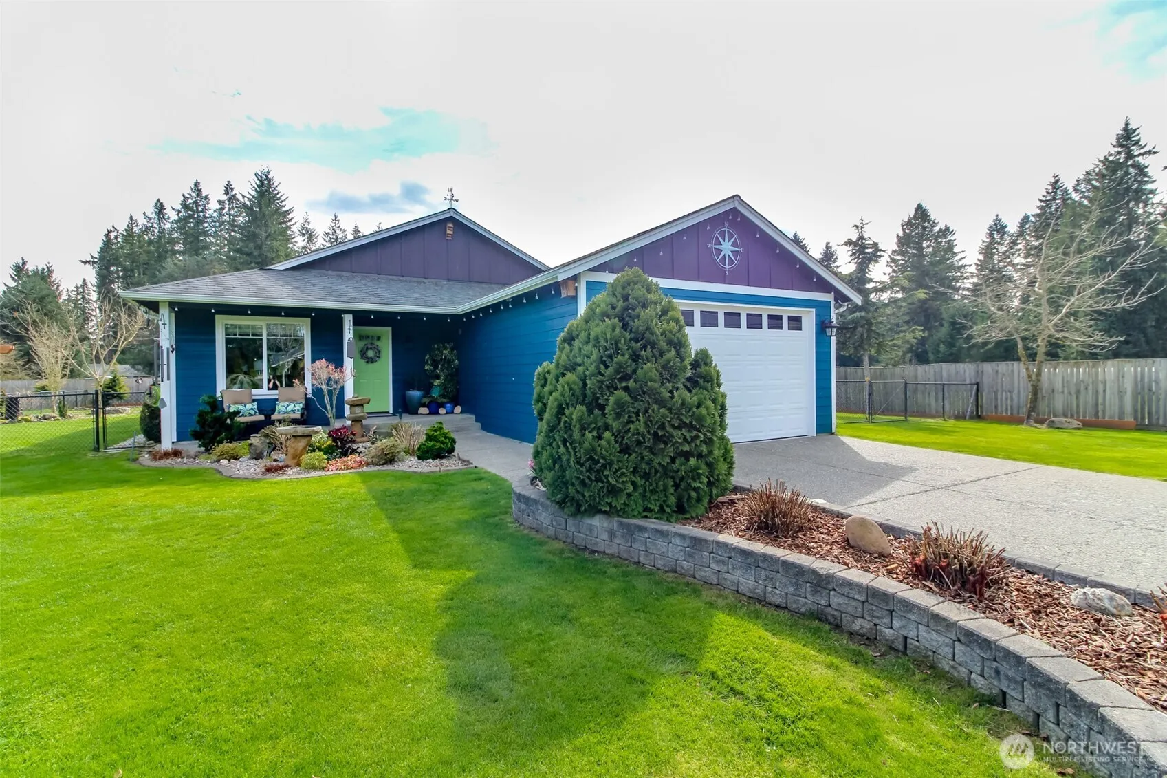 Summertime entertaining will happen here! Level one acre landscaped oasis! Private, oversized patio with Gazebo, firepit, outdoor water feature with custom lighting features, sprinkler system with 10 stations, landscaped settings, perennial gardens, and landscaped trees. RV parking, oversized 30’x30’x14′ pole barn/shop/carport with 30 amp hookup; perfect for storing RV, Boat, Quads, Lawn Tractors, Cars, and much more. Large studio shed with covered porch and 100 amp power. Wood and lawn tractor barn. Fully fenced level yard. Perfect opportunity for a possible DADU-detached accessory dwelling unit (please verify all information with local Pierce County Planning Dept.) One level living with open floor plan. Custom cook’s kitchen with solid granite counters, stainless appliances, and wood cabinetry. Vaulted ceilings in great room, open to kitchen and dining room. Luxury plank floors, wall to wall carpet in the hallways and bedrooms. Low maintenance living. Primary suite offers spacious 5′ walk in shower, double sink vanity with granite counters, and walk in closet. Enjoy the guest bedrooms with ample light and closet space. Utility room offers space for removing shoes, laundry, and storage. Keep cool in the summertime efficiently with Heat Pump, AC, and forced air HVAC system. Move in ready, ample garage space,shelving, and many more property features you must see! One Acre estate in Frederickson WA awaits.