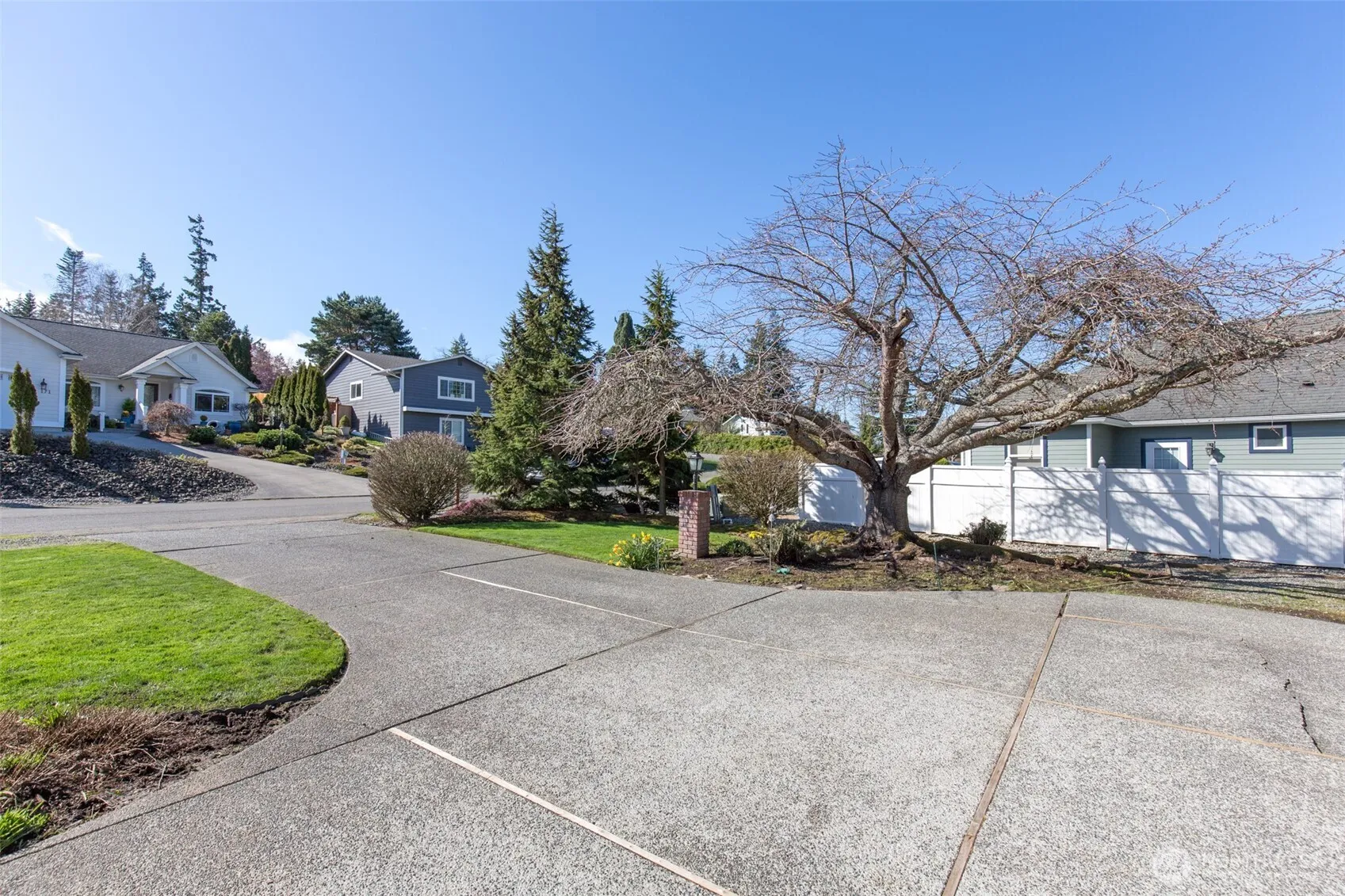 Stunning golf course views in this beautiful one level home filled with natural light. Vaulted ceilings and multiple skylights create an airy, open feel, while three sliding glass doors seamlessly connect indoor and outdoor living. The kitchen features quartz countertops, a sunny breakfast nook and abundant storage—perfect for both everyday living and entertaining. Step outside to two composite decks accessible from the dining area, breakfast nook and the spacious primary bedroom, offering ideal spots to relax and take in your morning coffee. Designed for comfort and convenience, the home includes a heat pump, whole-house vacuum system, and a well-appointed mudroom plus a separate laundry room complete with utility sink, ample cabinetry, and generous counter space. Additional highlights include newer gutters, recently painted exterior, and a 672 sq ft garage with golf cart door and pull-down ladder for extra storage. Extra parking for two cars in front. Walkable friendly neighborhood for dog walking and meeting your neighbors! Community events at the club house and just a short drive to Sequim restaurants, stores, hiking trails and other local attractions. Sunland amenities include an outdoor pool, golf course, club house, tennis/pickle ball courts, beach cabana with beach access and RV storage (for an additional fee). If you’re looking for a private quiet setting, look no further.