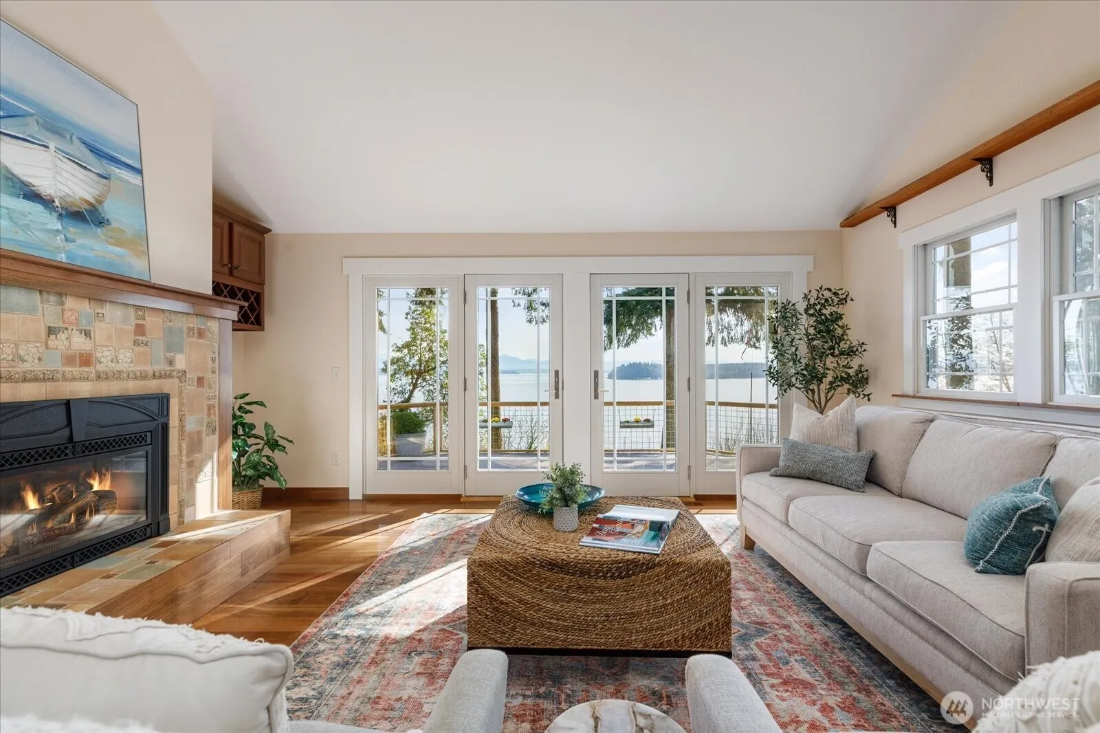 Wake up to ever-changing views of the Sound, Hat Island, and the Cascade Mountains – including Mount Pilchuck – from this peaceful high bank waterfront retreat on South Whidbey, where light, water, and sky shape the rhythm of each day. Just minutes from Langley and the Clinton ferry, this is a setting that feels removed, yet connected – an ideal balance for full-time living or a weekend retreat. Inside, the 2-bedroom 2-bath home is designed for comfortable, easy living. Natural light fills the open-concept main space, where a fireplace featuring historically accurate Arts & Crafts tile reproductions by nationally recognized artist Marie Glasse Tapp adds warmth and character. French doors open to the view deck, creating a seamless connection between indoor living and the landscape beyond. Hardwood floors run throughout, and the kitchen’s classic wood cabinetry offers both simplicity and function, with an easy flow for gathering or quiet mornings at home. A den and loft provide flexible space for work, creativity, or hosting guests. Originally built in 1960 and extensively remodeled in 2007, the home blends enduring character with thoughtful updates, including a metal roof, Rinnai tankless water heater, appliances, flooring, and windows. Set on a half-acre surrounded by evergreens, the property includes a fenced garden and a greenhouse crafted from reclaimed materials from the original home – rooted in both place and history.