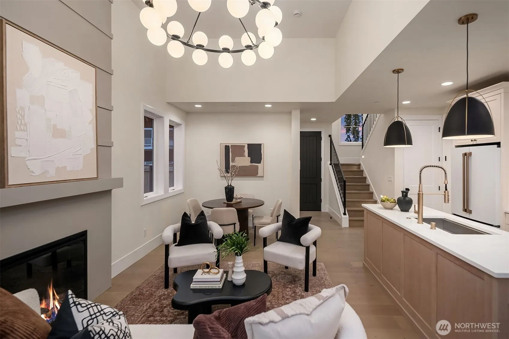 Location. Presence. Attainable. Not just a Cottage — an architectural moment quietly set within the highly desirable East of Market community. Set off a quiet, private lane serving just two homes, this one-of-a-kind residence blends refined design with effortless livability on a level lot framed by a fully fenced backyard retreat. Inside, the home unfolds with intention. A welcoming entry corridor flows seamlessly into a cozy dining area and a chef-inspired kitchen appointed with Café appliances. The Great Room commands attention with soaring 12-foot vaulted ceilings and a dramatic floor-to-ceiling fireplace — a striking centerpiece anchoring the entire living experience. Designer lighting throughout adds warmth and statement-piece finishes that elevate every corner of the home.Two bedrooms feature vaulted ceilings, while 2.5 thoughtfully designed baths showcase curated tile, statement lighting, and designer mirrors. Modern comforts elevate everyday living: toe-kick ambient lighting enhancing both the primary bath and powder room, keyless entry, EV charging pre-wired in the fully insulated garage. Walkable to Market Street, Waverley Beach, and top-ranked Peter Kirk Elementary & Kirkland Middle schools, yet tucked away for privacy — a rare balance of lifestyle and design.Thoughtfully engineered. Visually unapologetic. A distinctive East of Market opportunity priced for the real world.