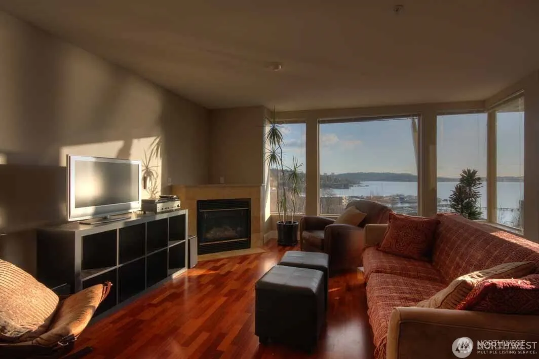 Avail 5/6! Spectacular views at beautifully appointed luxury Waterview Condo in heart of DT Kirkland. Stunning Views of Lk Wash, Olympics & Seattle skyline in every room. Live 1 block from fine restaurants, shopping, waterfront parks, art galleries. This 2bd/2ba condo boasts brand newer hardwoods, floor to ceiling marble baths, slab granite kitchen counters, SS appliances, view deck. 2 parking spots in secured garage. Building has gym, bus center. W/S/G/Gas Incl. No Pets. Tenant pays $250 move in fee and additional $250 move out fee at the end of the tenancy.