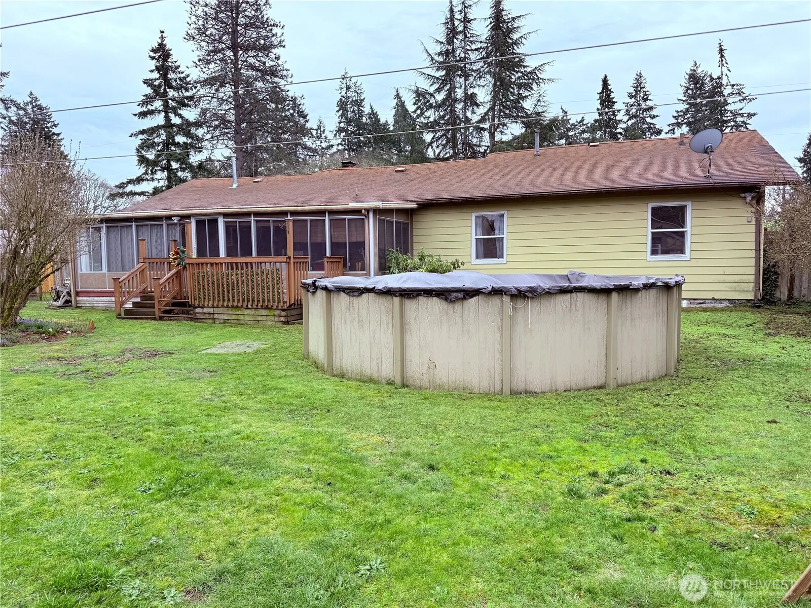 OFFER IN HAND. Sellers will review Monday at 7:30PM so please get any offers in by 7PM tonight. Tired of seeing all the homes these days always out of your price range? Come and see this cozy three-bedroom, 1 bath bungalow on almost 1/3 of an acre in Lakewood that is priced to sell. Updated windows, remote controlled motorized blinds in 2 bedrooms and up/down blinds in the living room. Huge enclosed covered back porch adds more 3 season living space. Large utility room plus additional large storage room leading to the garage. This home has so much extra storage! Original kitchen is large, leaving lots of options for updating in a future project. Close to the base, but in a quiet neighborhood, this home just needs some cosmetic elbow grease to become the home you desire. Exposing the original hardwoods under the carpet and adding some fresh paint on the walls could build instant sweat equity with very little effort. It has a large fully fenced front & back yards and a giant working above ground pool! Plenty of seasoned wood in the garage to keep the wood stove going and the house toasty warm. Heat pump keeps the house warm when you aren’t using the fireplace, but also keeps the home nice and cool on those hot summer days. Home is priced well below tax assessed value for a quick sale and being sold “as is.” Some virtual photos added to show its potential.