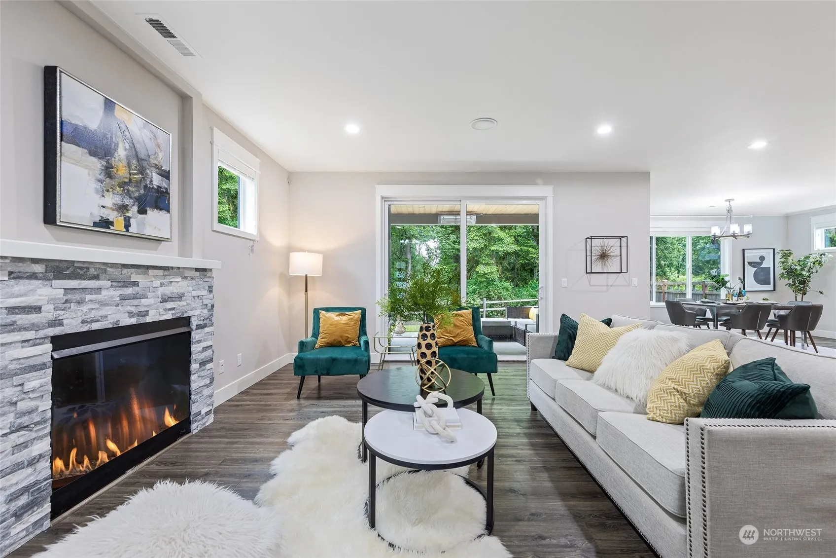 Nestled in quiet neighborhood, this beautiful home epitomizes suburban peace and modern comfort. Grand foyer welcomes you to expansive living area with cozy gas fireplace. The adjoining chef’s kitchen boasts ss appliances, stylish cabinetry, quartz counters & oversized island. Butler’s pantry w/ wine fridge. Dining off kitchen. Office on main level. Spacious primary suite has vaulted ceilings, luxurious bath with soaking tub, large shower, dual vanities and huge walk-in closet. Loft is great for home theater or play area. Covered patio with fireplace & heater is perfect for year-round outdoor relaxation. Heat pump, A/C, EV outlet, tankless hot water. Fully-fenced backyard facing greenbelt offers privacy and serene tranquility. Welcome home!