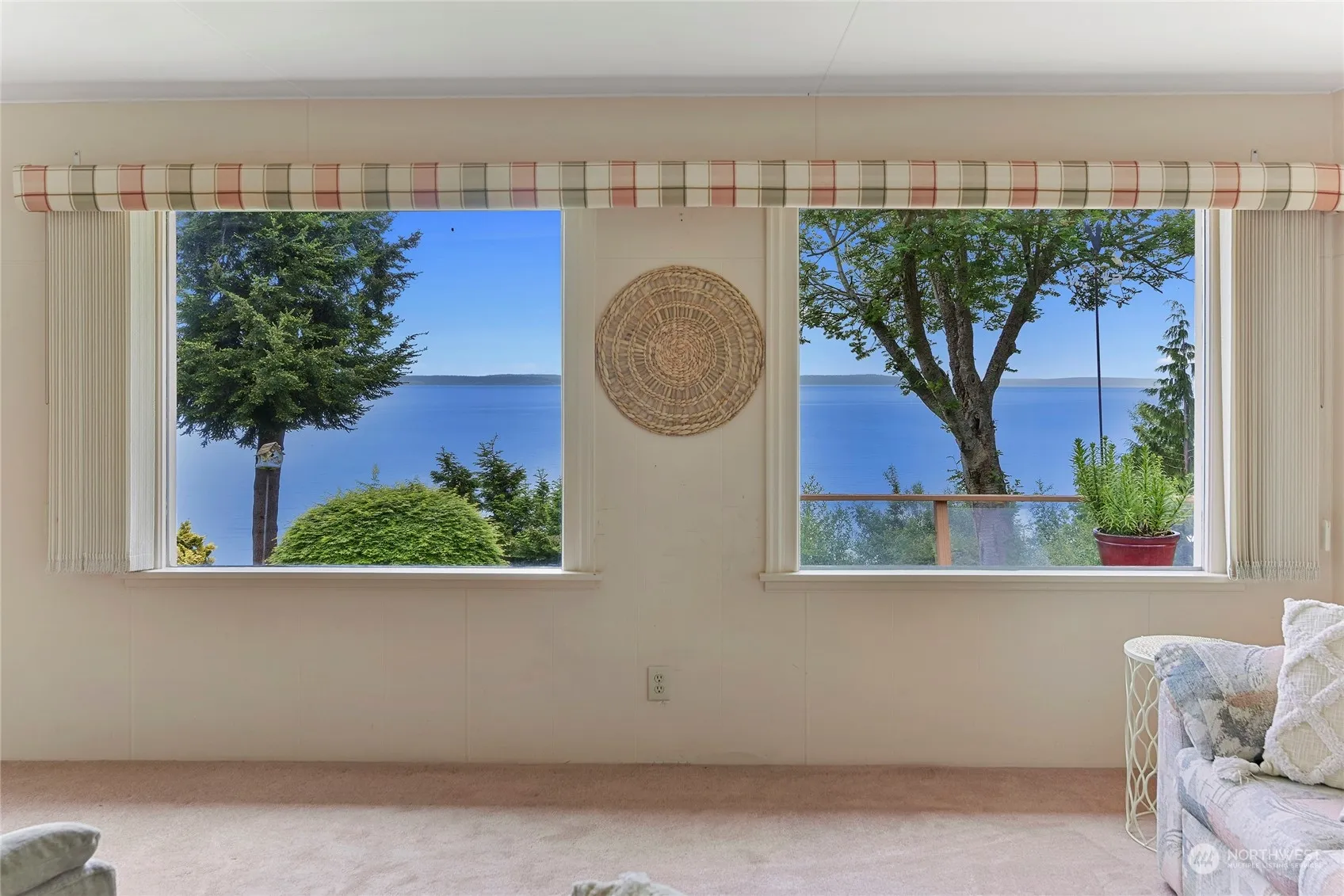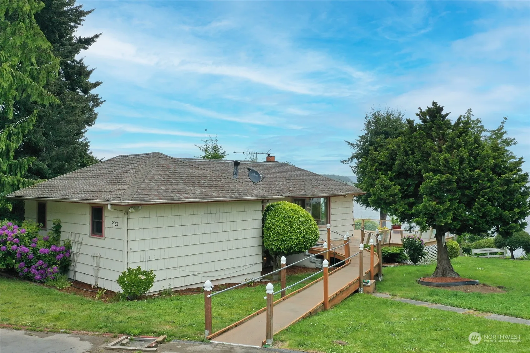 Nestled atop a serene high bank overlooking the picturesque waters, this 3 bedroom 2 bath homes offers scenic tranquility. Rich with character this home invites you to embrace a peaceful waterfront lifestyle surrounded by natural beauty. Featuring a comfortable layout with multiple living areas that frame stunning views of the water, creating the perfect backdrop for both quiet evenings and lively gatherings. Large windows allow natural light to flood in, illuminating the classic features and craftsmanship. The 3+ Acre property extends into a lush landscape. The generous deck overlooks the bay, offering an idyllic spot for morning coffees or sunset dinners. Downstairs can be separate living space. Includes 2 bed/1 Bath Mobile home w/ Septic