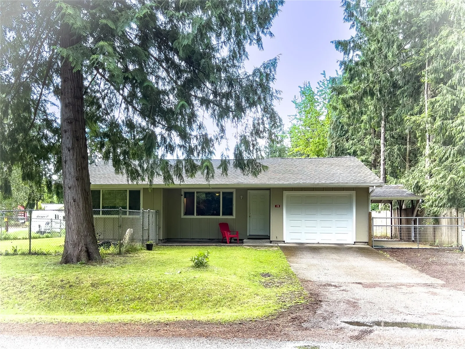 Conveniently located near a county park with a playground & on a public transit route, this corner lot rambler boasts a fully fenced, level yard, with fruit trees, greenhouse, raised garden beds, separately fenced garden space, delightful deck/patio, RV pad, and storage shed for your outdoor enjoyment and entertainment. Spacious kitchen with lots of natural light, cabinetry and counter space. Comfortable living room, with a ductless mini split heat pump for cooling & heat, large picture window and ceiling fan. Three good sized bedrooms, located near full bath and hall closet. Laundry & 3/4 bath, including deep sink off dining area and near door to attached garage. Attached, fenced carport complete the functionality and appeal of this home.