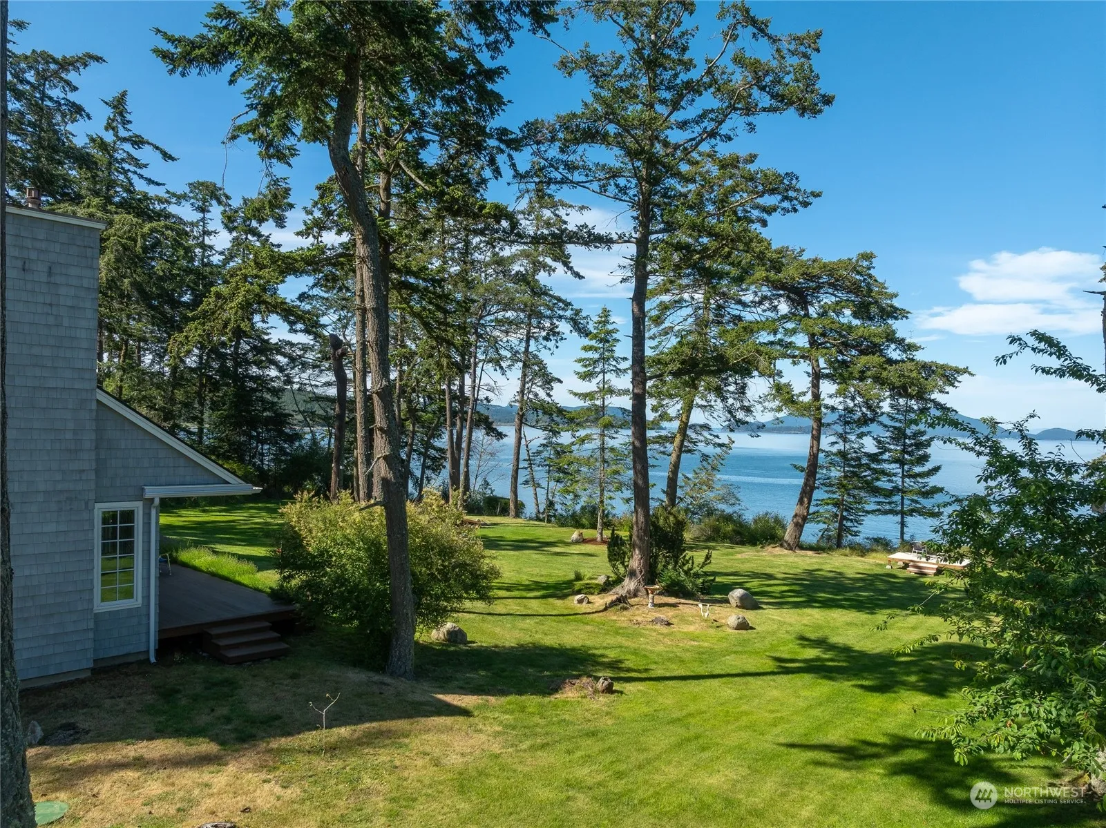 Beautifully Built Home with Expansive Water & Mt. Baker Views from nearly every room of this light filled home on 209 ft of waterfront sited on 1.6 private acres. Three sets of French doors open onto the huge deck perfect for entertaining. Sunny, ample yard & top of bank deck to watch ferries & ships in the Straits. Spacious living room, 10 ft ceiling & Rumford fireplace. Sunlit, bright kitchen/family room with oak floors is so inviting you will never want to leave. Dining room & den have built-in cabinets & bookcases. Very generous primary bedroom ensuite with tub alcove & extra large walk in closet. Add in a couple more bedrooms for your perfect island home. Attached 2 car garage with extra storage.