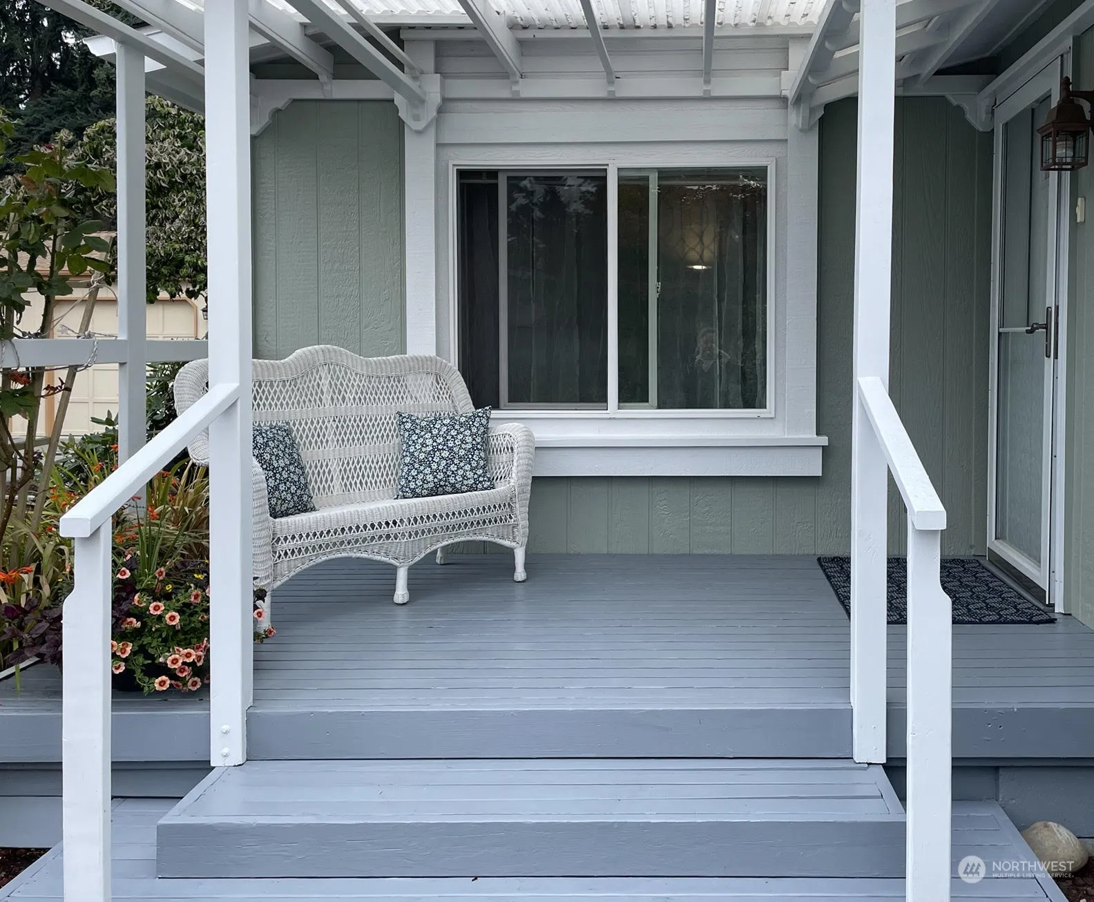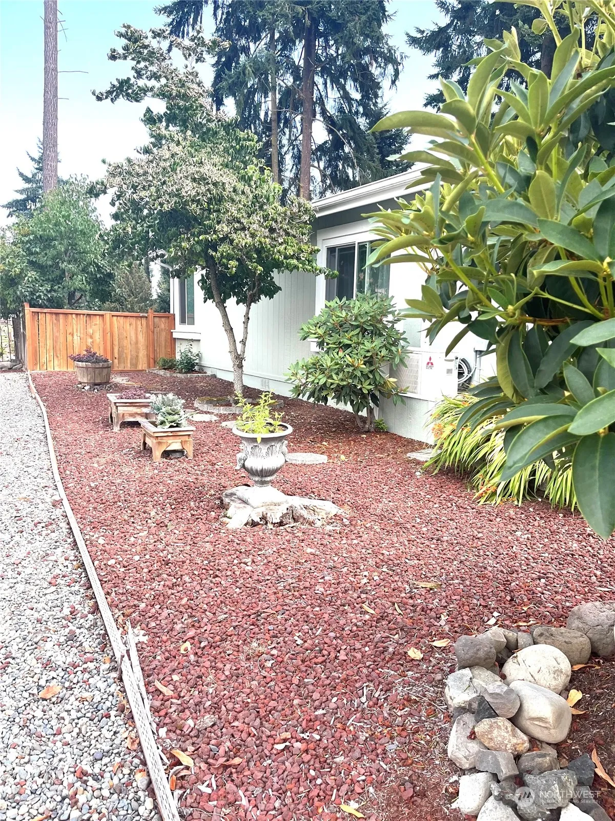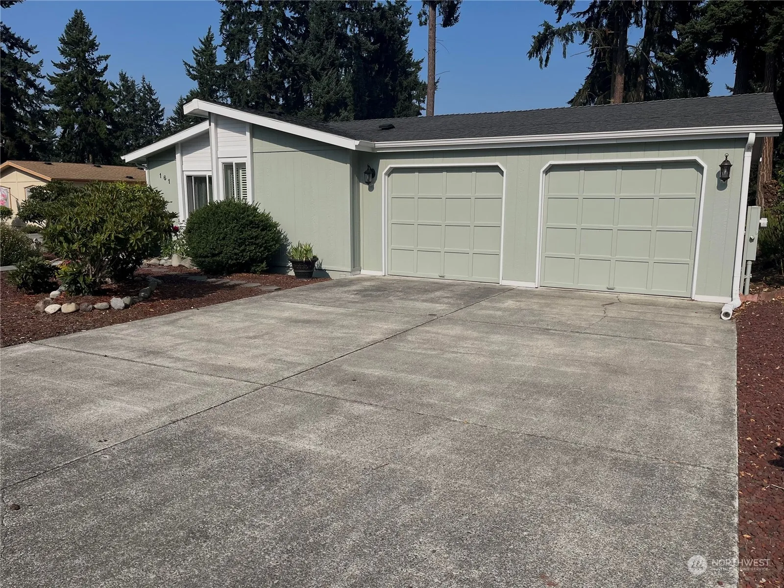 Expanded, updated, well maintained triple wide in the best 55+ park in sunny Sequim. Rhodies and roses welcome you home. Bright, open floor plan with new laminate flooring and freshly painted porches. Updated kitchen adjoins the sunny dining room. Large, en-suite bedroom with walk-in closet. 3rd bedroom accesses a delight sky lit 156 sq, ft. 4 seasons sunroom. A covered gazebo for entertaining while overlooking the fully fenced yard with views of the greenbelt and garden beds. 2 car finished garage. Great location close to the Parkwood clubhouse.