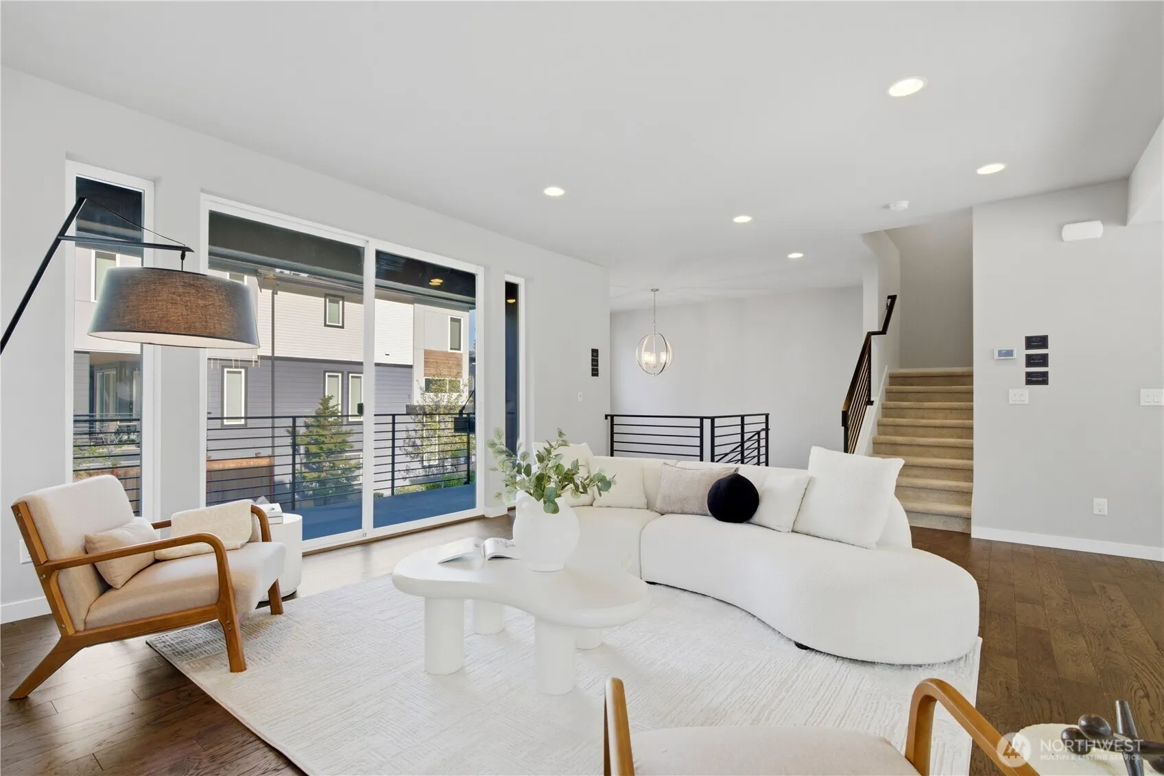 West-facing with territorial views, this light-filled Northwest contemporary sits in Newcastle’s desirable Taylor Ridge community. Soaring ceilings and walls of windows bring in abundant natural light, highlighting hardwood floors, modern metal railings, and a cozy gas fireplace in the open great room. The chef’s kitchen centers around a huge island with generous storage, crisp white cabinetry, white quartz counters, and KitchenAid appliances. Upstairs features a spacious primary suite with French doors, a 5-piece bath, and walk-in closet, along with two additional bedrooms and a convenient laundry room with utility sink. The lower level offers flexible living space with a bonus room, 4th bedroom, and ¾ bath—ideal for guests or multi-generational living. Enjoy two decks, one plumbed for gas, plus a fully fenced backyard. HOA covers exterior and yard maintenance. Minutes to trails, Newcastle Elementary, shopping, and top-rated Issaquah schools. Pre-inspected, and move-in ready.
