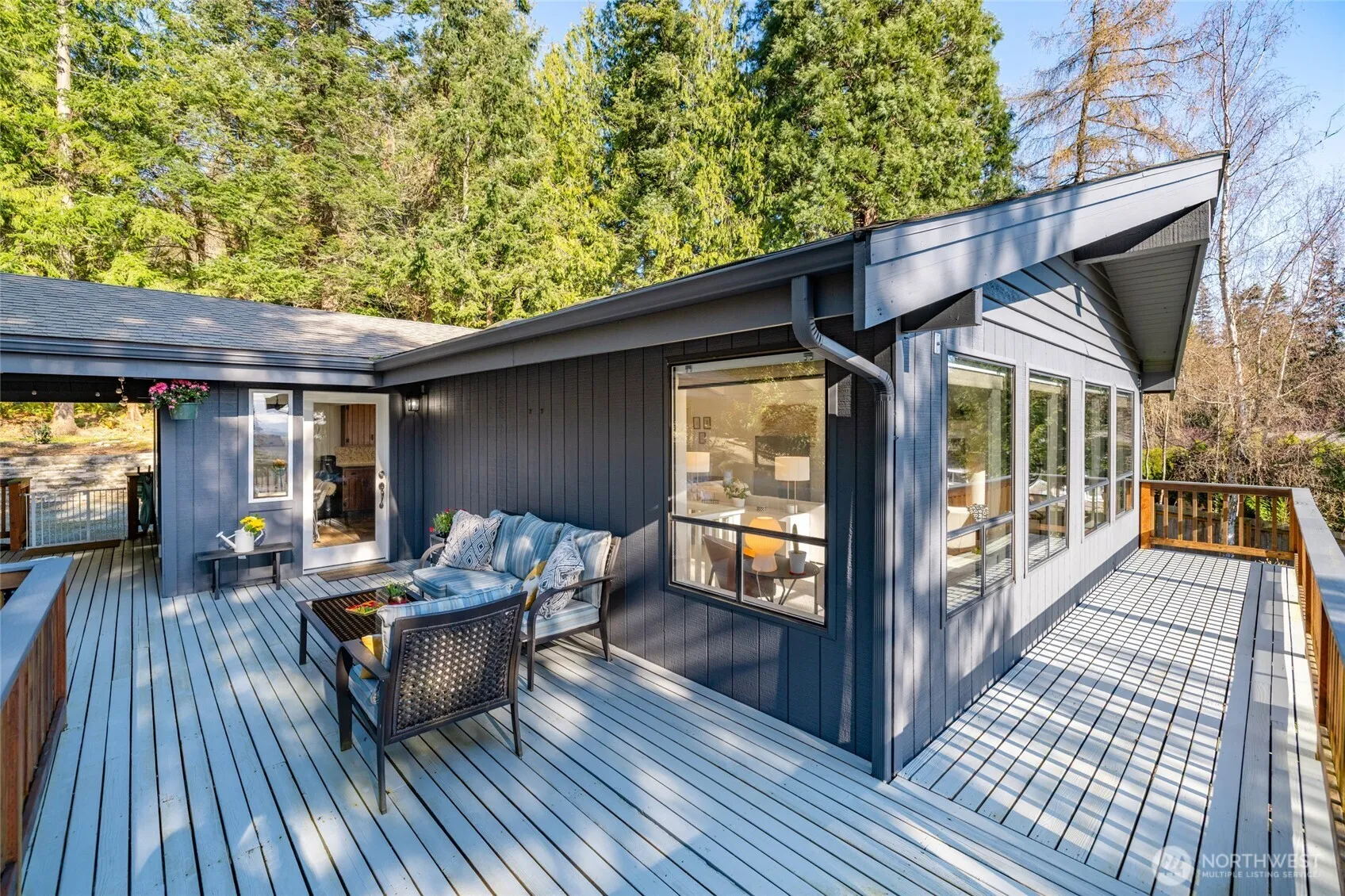 Welcome to your private view retreat in welcoming Shelter Bay and experience breathtaking scenery and a flexible design that suits many lifestyles. This spacious 3-bedroom, 3-bath home offers 2,432 SF, ideal for downsizers seeking space or buyers craving a peaceful getaway. Moor or launch your boat minutes away in the Shelter Bay marina. Step inside to a mostly main-level living plan with vaulted ceilings, updated flooring, and an open-concept layout filled with natural light. The beautifully updated kitchen flows seamlessly into the living and dining areas, all perfectly positioned to capture expansive views of the Shelter Bay marina and the Cascade Mountains—your everyday backdrop. Downstairs, a versatile lower level features a secondary primary suite with ensuite bath, an additional bedroom and bath, office space, and a generous family room with bar area—perfect for entertaining or extended stays. Step outside to your private hot tub and unwind in total serenity. Surrounded by lush landscaping and adjacent to a greenbelt, this home offers privacy while being just minutes from La Conner’s charming shops, restaurants, and waterfront.