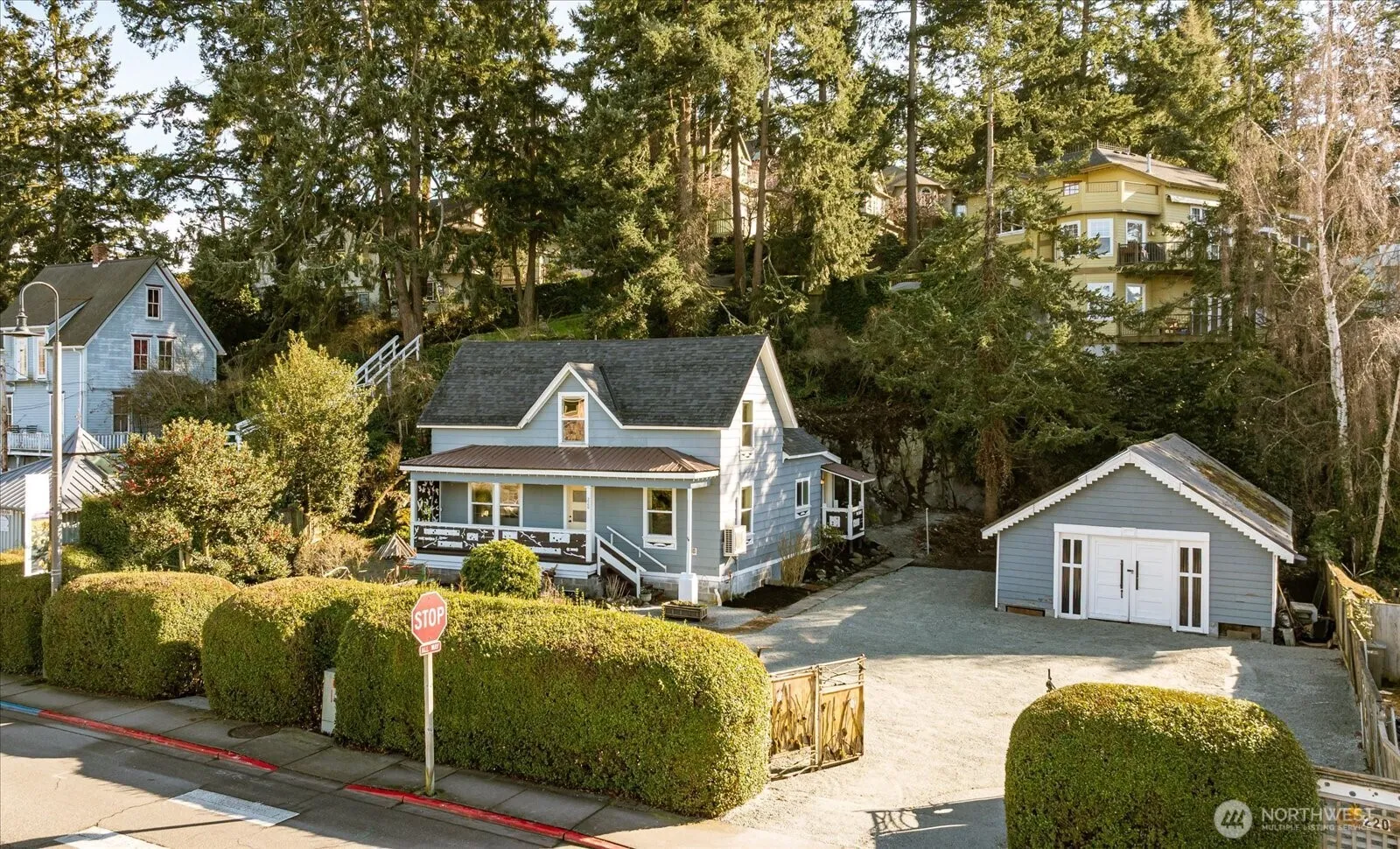 Built in 1900 and just blocks from the waterfront, this distinctive La Conner residence blends historic character, artistic detail, and the ease of in-town living. Set on a quarter-acre lot in the heart of town, the property offers a sense of space while remaining steps from galleries, museums, and award-winning restaurants that give La Conner its cultural appeal. Artistic gates open to a garden inspired by Japanese design, where a naturally occurring rock wall creates a rugged backdrop. Inside, wood floors run throughout, grounding rooms that feel warm and welcoming. The living room features built-in shelving and is plumbed for a gas fireplace. The dining room carries easy charm, well suited for long meals and conversation. Upstairs are two bedrooms, a spacious bath with a view, and a bonus room ideal for an office or creative retreat. The existing shop has served as a creative and storage space over the years. For some, it may be just right as-is. For others, it presents an opportunity to reimagine- studio, workshop, or something entirely new. Within the gated entrance, a large gravel parking area offers RV parking and room for multiple vehicles- an uncommon convenience so close to town. Enjoy walks along the channel, afternoons exploring galleries, and evenings at award-winning restaurants- part of the everyday rhythm of life in one of the Pacific Northwest’s most charming historic towns. Experience the magic of living in La Conner.