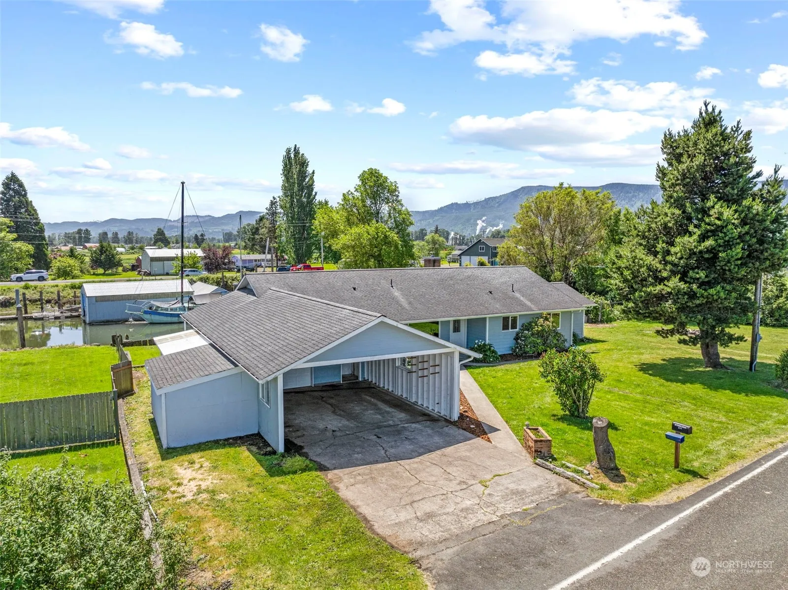 Be one of the first to arrive at the fishing hole! Columbia River access from Welcome Slough-front property w/its own dock! More than meets the eye – this beautiful custom-built one-level home boasts a ton of built-in cabinetry, kitchen w/view, great room w/large viewing windows to enjoy yard & water view, new wood burning insert graces a rock wall, hardwood floors, open concept w/dining area & built in organization station! Primary & guest rooms have ample space, jetted tub in main bathroom w/tile surround; true mudroom provides great space & more built-ins to do laundry, easy access to outside areas plus 3/4 bath. Large sunroom & don’t let the carport fool you – behind that is a great garage w/workshop area & guest room w/its own deck!