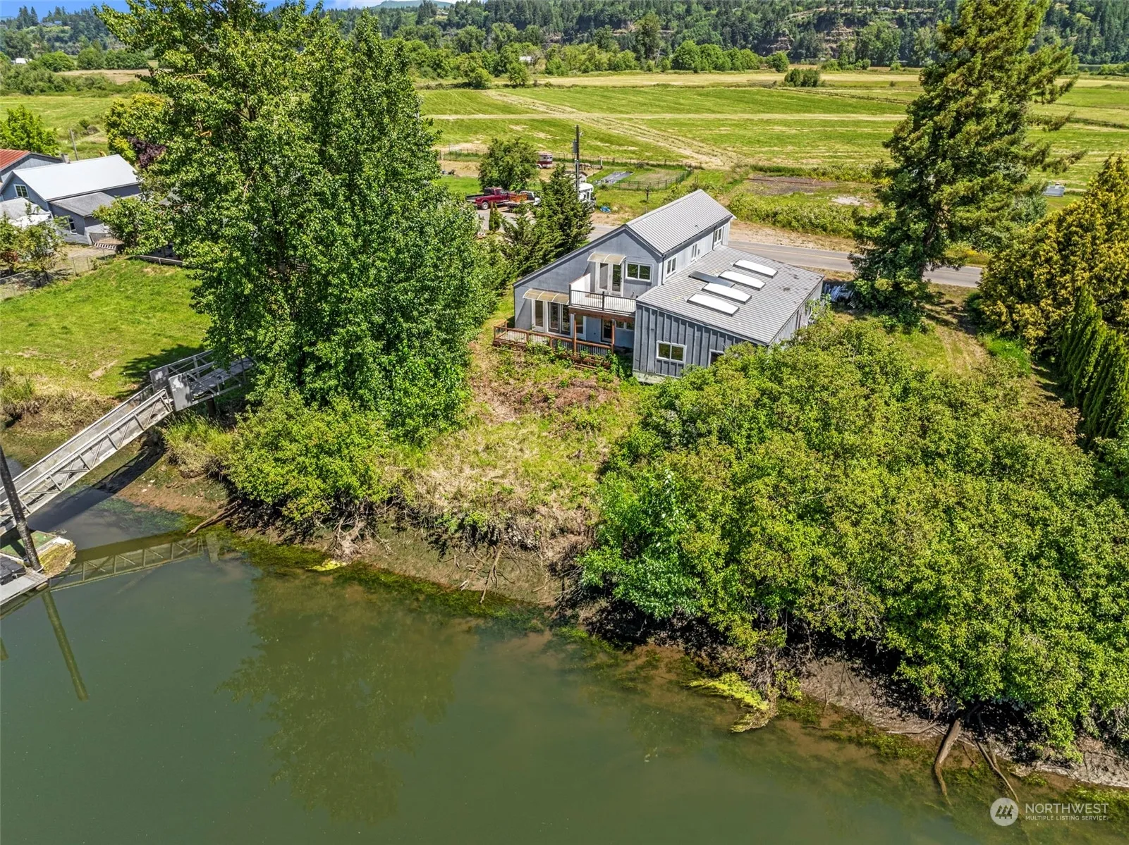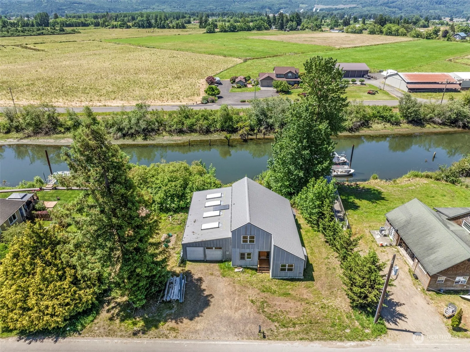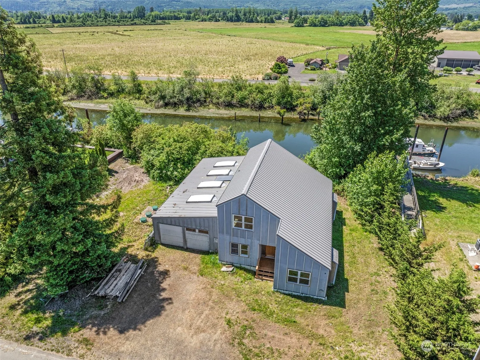 Unique opportunity to earn instant equity w/UNFINISHED home on Puget Island; two tax parcels (inside & outside the dike). Enjoy waterfront life w/Birnie Slough frontage, two decks for taking in the water & territorial views plus land across the road for shop, outbuilding, garden &/or pastureland. Many building materials are included w/sale – the owners dream had not yet materialized but enter this incomplete home and see for yourself the amazing little gem he sought to bring to fruition. Vaulted ceilings, huge fireplace in great room w/water views, spacious kitchen, large bath, office & dining (use as main floor bedroom?) plus large utility on ground floor. Wander upstairs to full bath, 2 BR (1 w/deck) plus loft/nook overlooking great room!