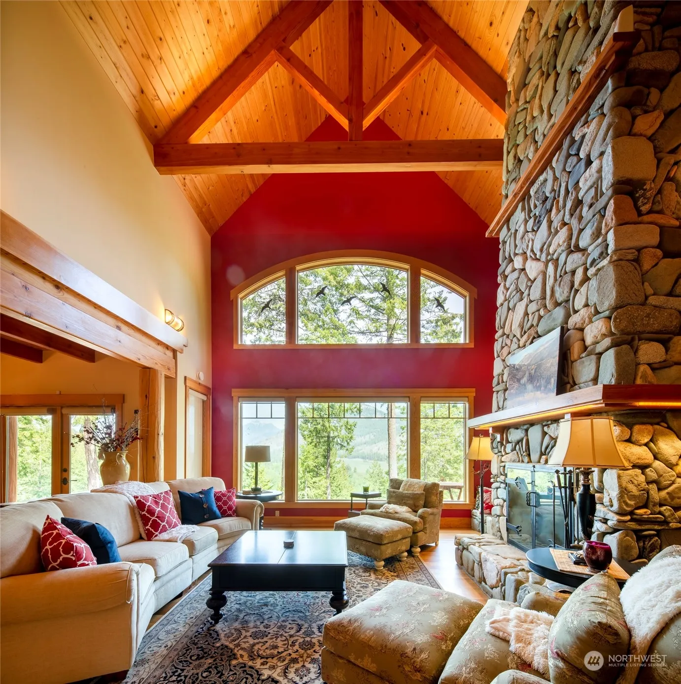 Discover your dream home in the heart of Methow Valley! This property is unrivaled in its stunning craftsmanship, breathtaking views, solitude & luxurious amenities. Adjacent to public land, with nearly a mile of riverfront on 62 acres, this property is truly one-of-a-kind. The curved dining room overlooks the Mazama corridor, & the living room boasts a magnificent floor-to-ceiling river rock fireplace. The chef’s kitchen is equipped with all the features to create gourmet meals. The main house features three primary bedrooms, each with its own cozy fireplace, and there is also a studio apartment, bunkhouse, & covered decks. You’ll love relaxing in the hot tub or on the outdoor deck, taking in the stunning views. Extra garage too!