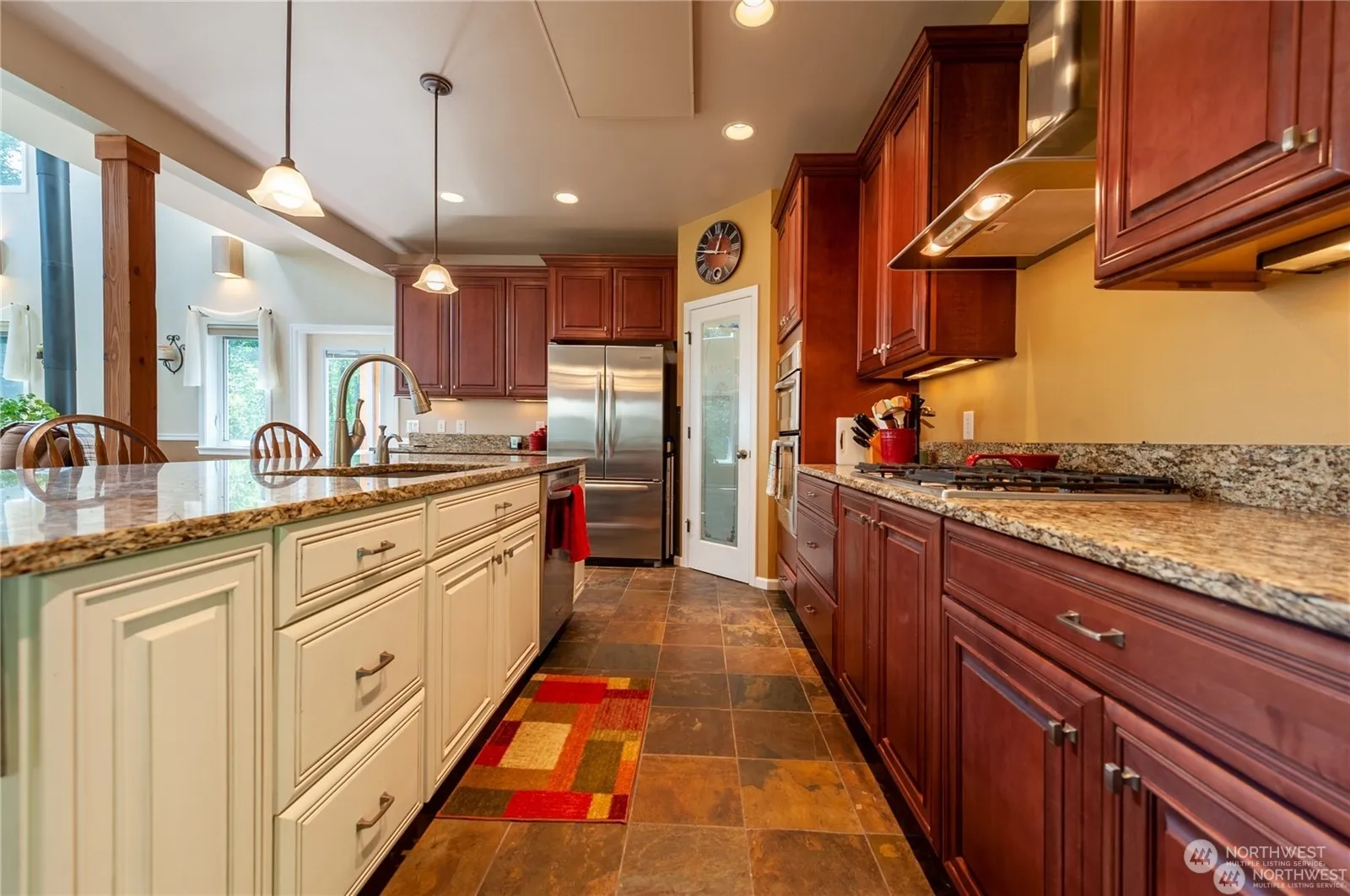 Find peace & renewal in this rural view home on a 5 1/2 acre parcel center island with/a beach overlooking Hales Passage to Chuckanut Hills. A unique opportunity here, the privacy of forested acreage,+ interest in 481′ of low bank waterfront, sink a bouy & sail away ( just a 5 min walk from the house)! The gourmet kitchen features a marble countertop island, slate floors, & stainless steel appliances. A spa-like primary suite w/ jetted tub & separate shower on the main adjoining a gorgeous home office. Upstairs, you will find an open-concept floor plan w/ three bedrooms (one, an en suite) & great room for gathering w/ view deck. Excellent outdoor space for entertaining, fenced garden area, extra covered area for toys, & outbuilding!