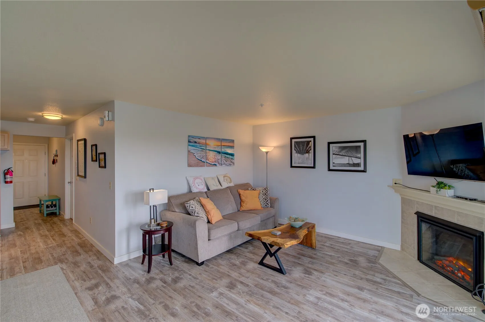 Well-maintained 1 bedroom, 1.5 bath ocean-view condo located near downtown Long Beach. Open the windows and listen to the ocean or walk a short path and see it for yourself. This unit offers convenient access to dining, shopping, the boardwalk, Discovery Trail and local entertainment, all within a short walk. Enjoy everything available to area such as fishing and clamming. The interior features extensive updates, including luxury vinyl plank flooring throughout, quartz countertops in the kitchen, new stainless steel appliances, updated fixtures and lighting, and fresh interior paint. The kitchen provides ample counter and cabinet space, and all appliances are included. The living area includes a gas fireplace and opens to a covered deck with ocean views, providing a comfortable space for year-round enjoyment. The bedroom is well-sized, and the unit includes both a full bath and a half bath for added convenience. Currently used as a flourishing furnished income property, offering flexibility for continued rental use or personal occupancy. A clean, move-in-ready condo in a desirable coastal location with easy access to the beach and town amenities.