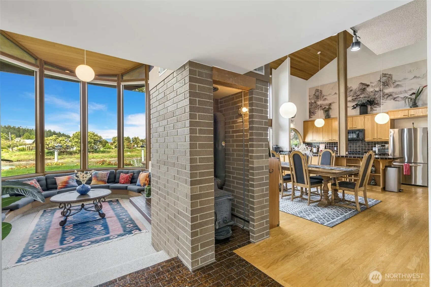 Welcome to 2180 Cove Drive in Mariners Cove Beach Club! a stunning waterfront retreat with a private floating dock could accommodate a 50-foot Yacht and perfect for kayaking, boating, fishing and crabbing etc.! This PNW Contemporary Architectural masterpiece boasts soaring height circled family room with floor to ceiling windows looking the tidy canal & sound view, vaulted cedar ceilings through the house. Two primary suites with recently updated bathrooms. The third bedroom has a private remodeled full bathroom adjacent to the open loft office space with Mountain & Sound views. Don’t miss the hidden artist’s studio next to the swirl staircase with curved cedar wall. A Chef’s dream kitchen with Classic Spanish tile countertop& double oven.