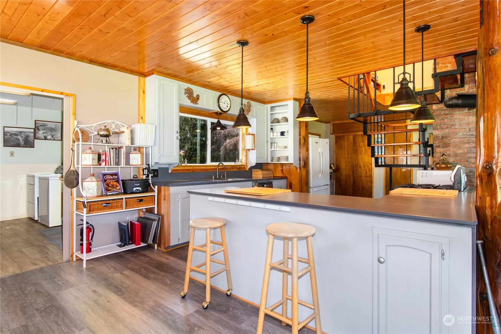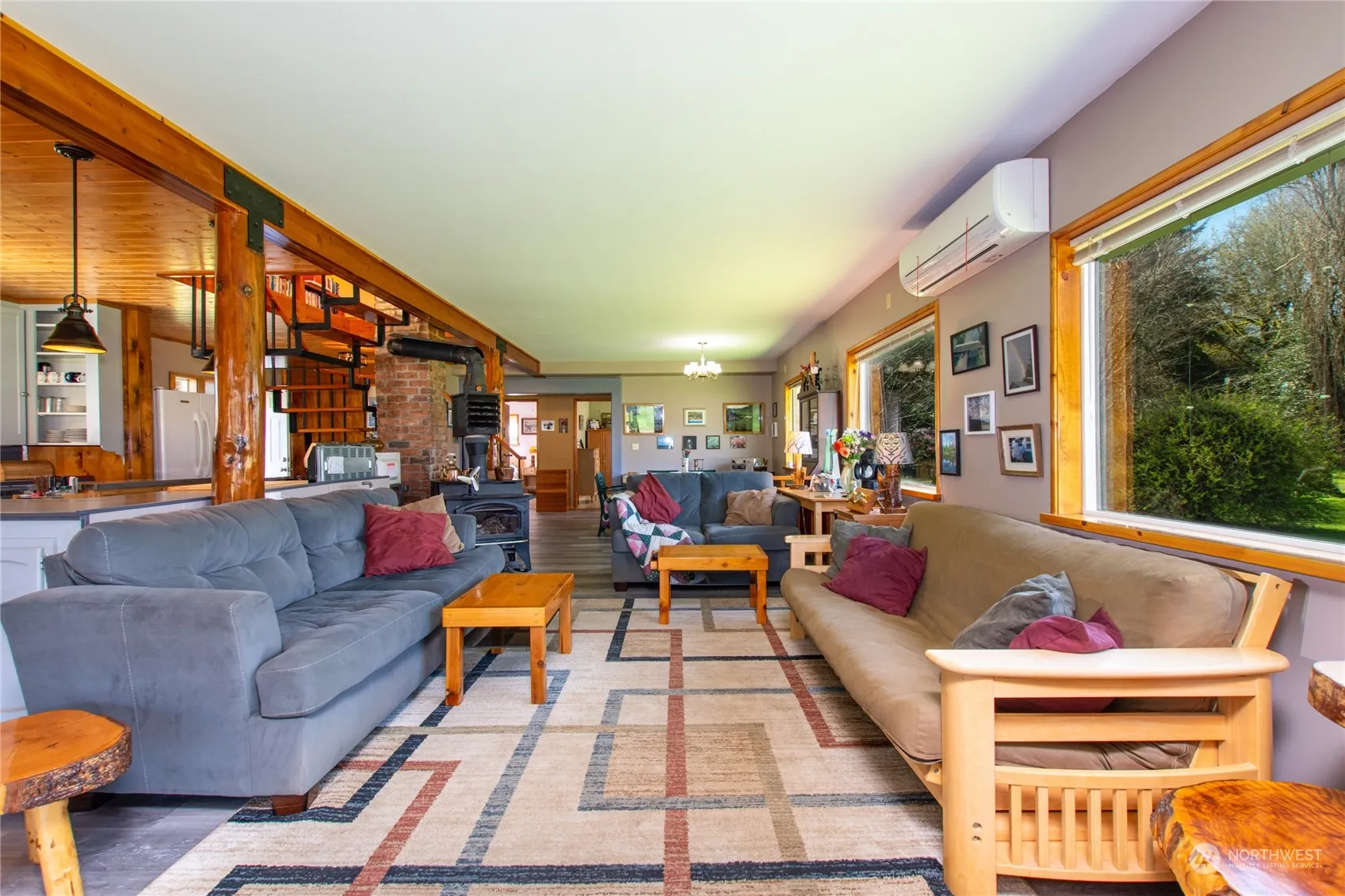 Live the amazing life only a farm on a river can provide! Remodeled farm home on 69.39 level acres with 7,000 feet on the peaceful Grays River. Pristine home boasting 3 bdrms, 2 bthrms, open concept living w/walls of windows to take in the panoramic views, living rm w/wood stove, spacious kitchen w/eating bar-tongue & groove pine ceiling, dining rm w/slider to covered deck, custom staircase to primary bdrm-3/4 bthrm-skylights-viewing deck, den/office, pantry/utility rm, crafts/exercise rm, ductless heat pump, vinyl windows, metal roof, 806 SF attached garage/shop & 1 car carport. The grounds offer a 60×100 barn-shop-hanger-loft-covered parking for farm equipment, a 1,000 foot turf air strip w/taxi way, pastures, fruit trees & gardens!