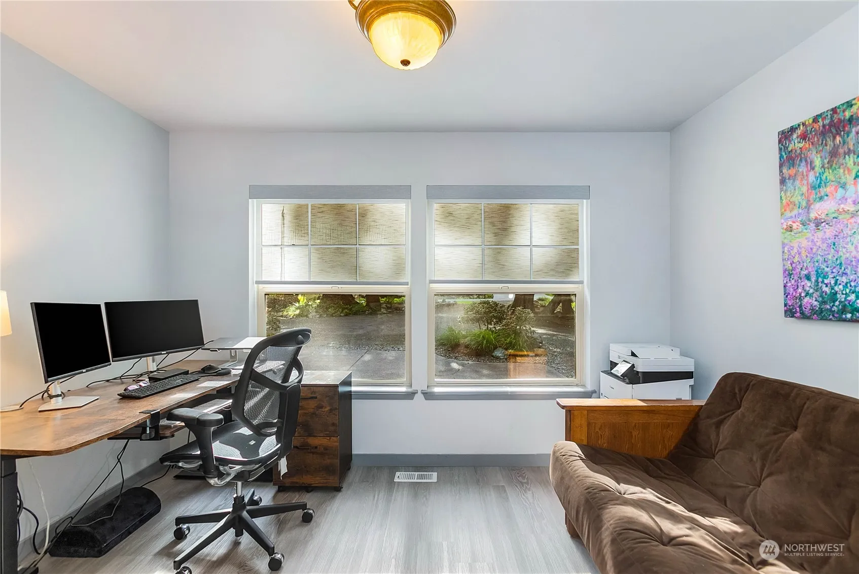 Welcome to this perfect PNW home on a large corner lot, close to town, marina, & beach club. The main floor features a dedicated office, a spacious living area w/vaulted ceilings, & propane fireplace. The primary suite has french door entry, back deck access, a large 5-piece bath w/soaking tub, & big walk-in closet w/built-ins. Enjoy new LVP flooring, fresh interior paint, and new doors throughout. The home includes 2022 appliances, a new patio, bonus loft/media room, and circle driveway. The fenced backyard offers privacy w/covered porches, a propane gas stub for grilling, & beautiful landscaping with a pond. With trails right from your doorstep and access to the beach club’s amenities, this home offers the best of luxury & convenience.