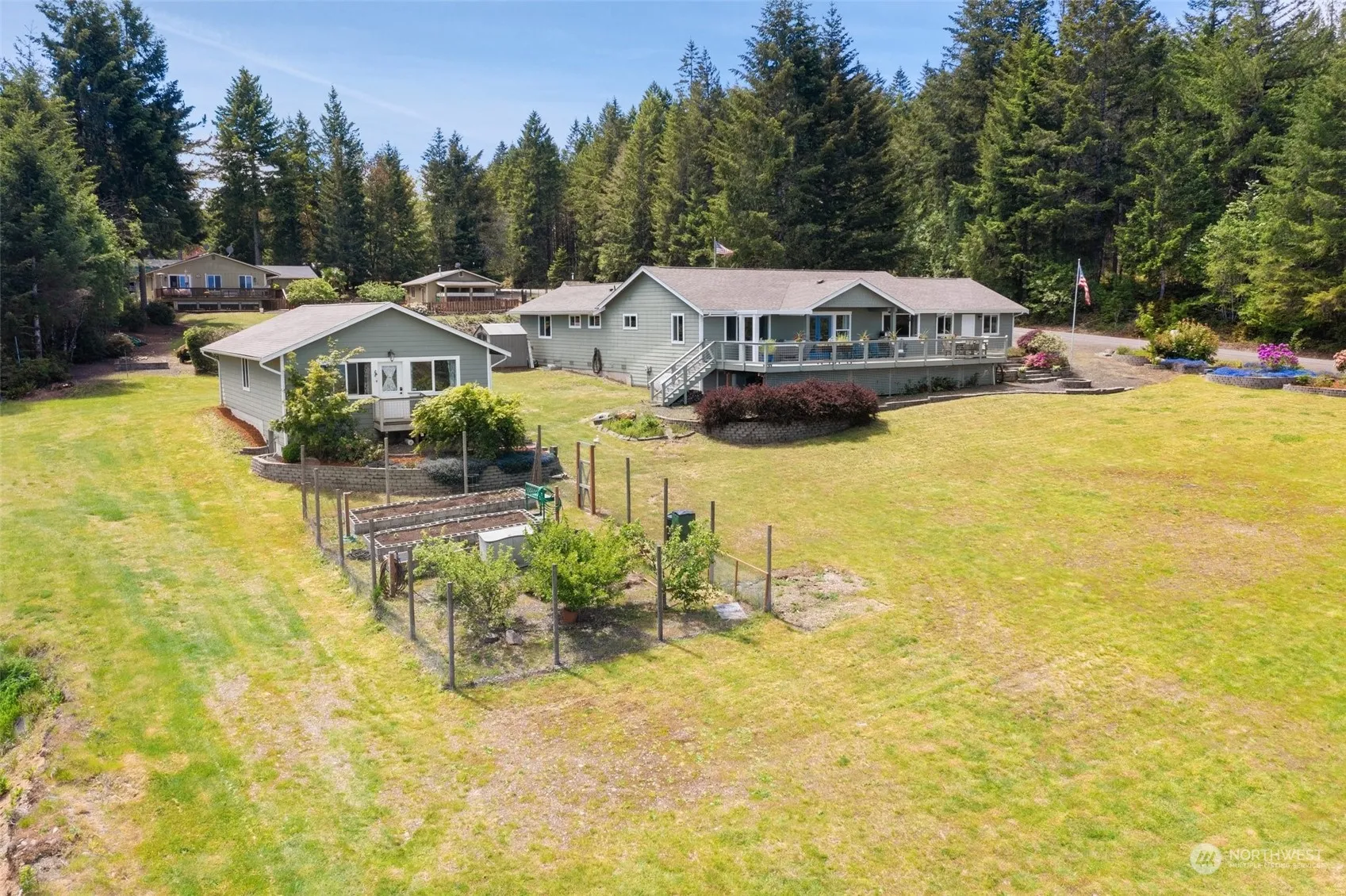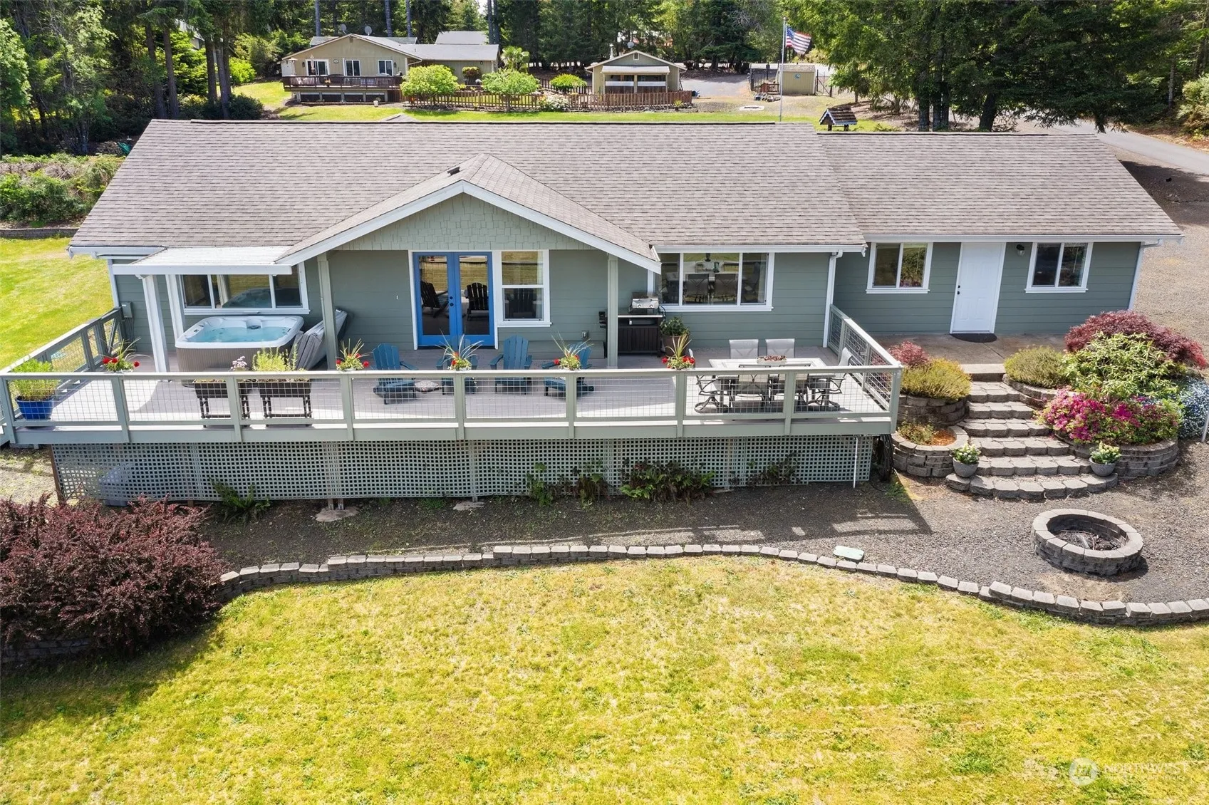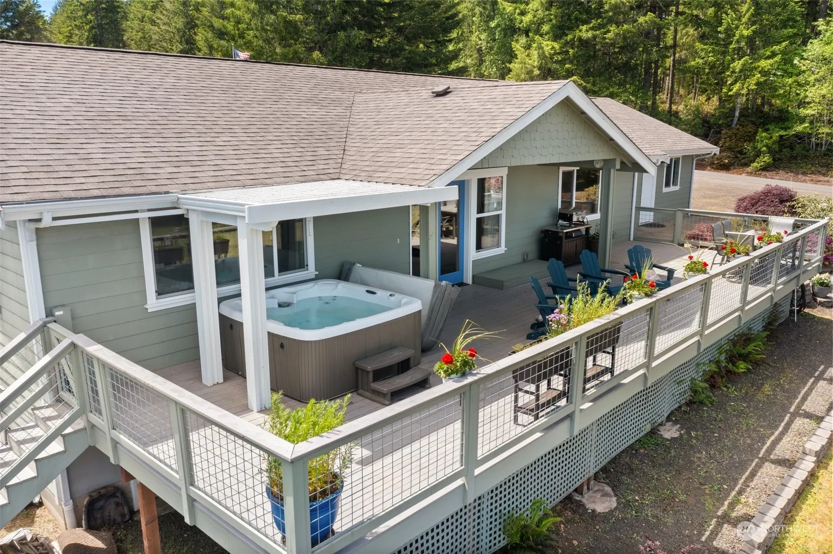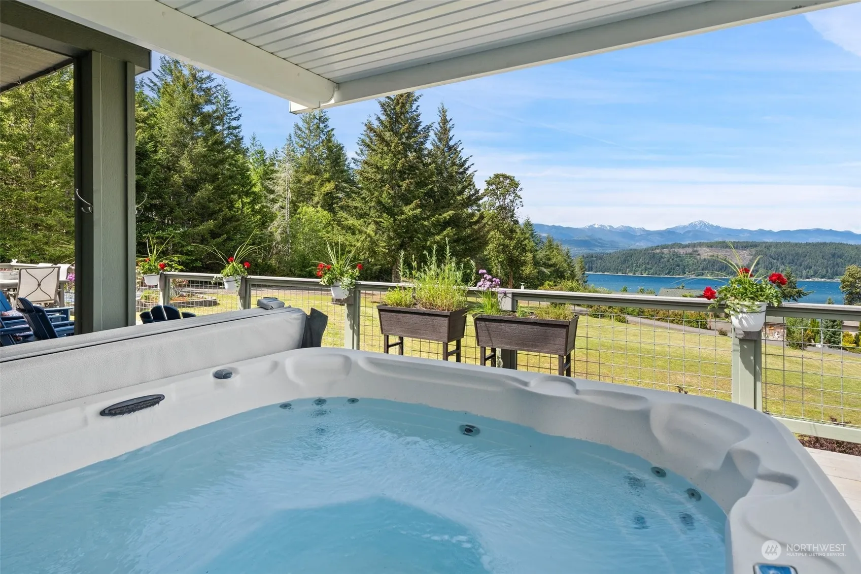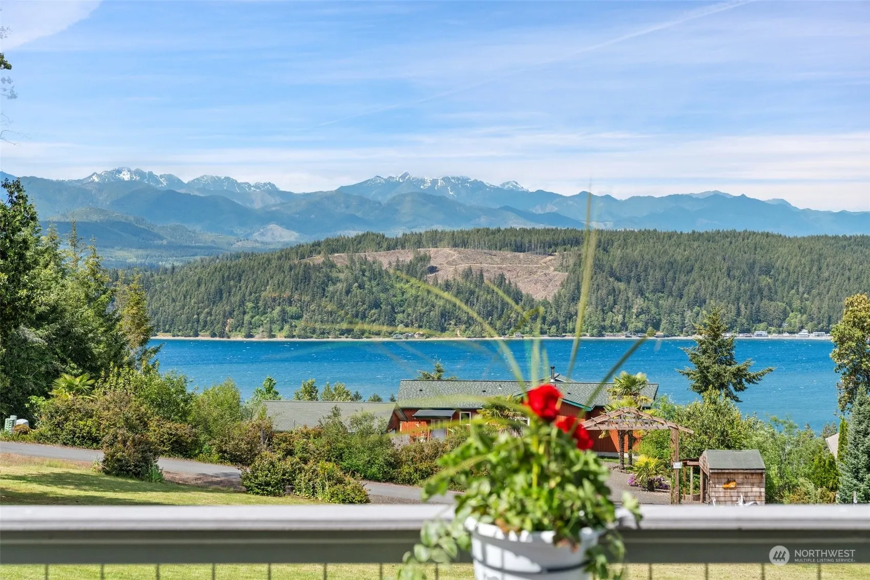 Discover a perfect blend of luxury & tranquility in this one level home situated on over an acre of land~offering breathtaking views of Hood Canal & the majestic Olympic Mountains! Enjoy panoramic vistas from every angle of the main house, including the expansive deck & hot tub. The home features two en-suite bedrooms with elegantly appointed baths, plus a third bedroom & full bath. The high end kitchen offers a gas range, granite counters, & separate coffee bar area. In addition to a large attached two car garage, you’ll find a second garage for more parking/storage, including a dreamy work-from-home or guest sleeping space with 3/4 bath. A rare gem, combining luxury living with the natural beauty of the Hood Canal area. See it today!