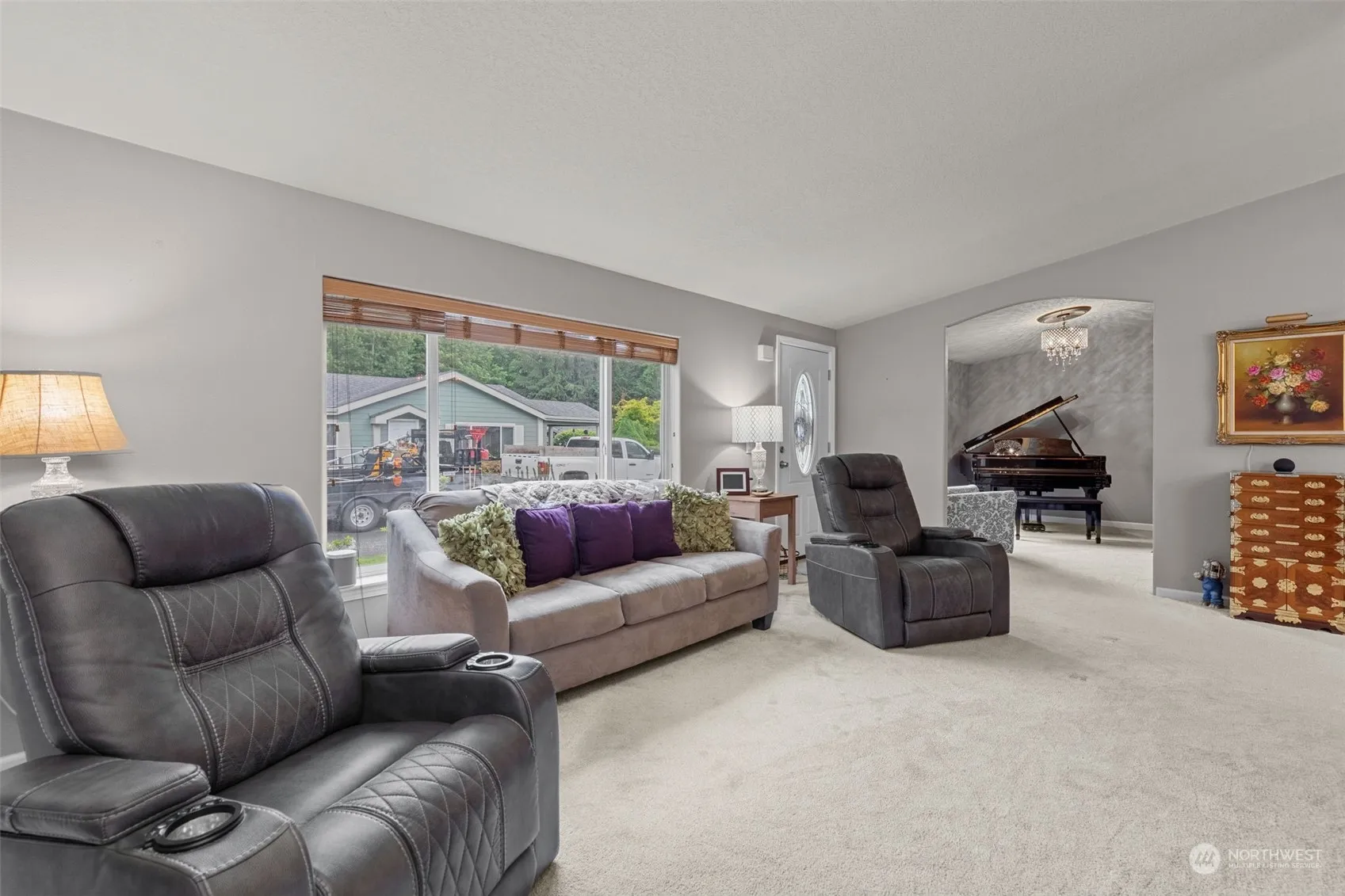 Discover this beautiful and meticulously maintained 3BR home in the desirable 55+ gated community of Golden Valley. Enjoy a private setting with a 2-car garage. Features include a spacious kitchen with pantry and breakfast bar, a family room with vaulted ceiling, and a primary bedroom with a luxurious 5-piece bath. All bedrooms have walk-in closets. The patio overlooks mature landscaping with a sprinkler system. Stay comfortable year-round with a heat pump and AC. Private walking trails lead to the river, and RV parking is available. Kitchen and bathrooms have been updated.