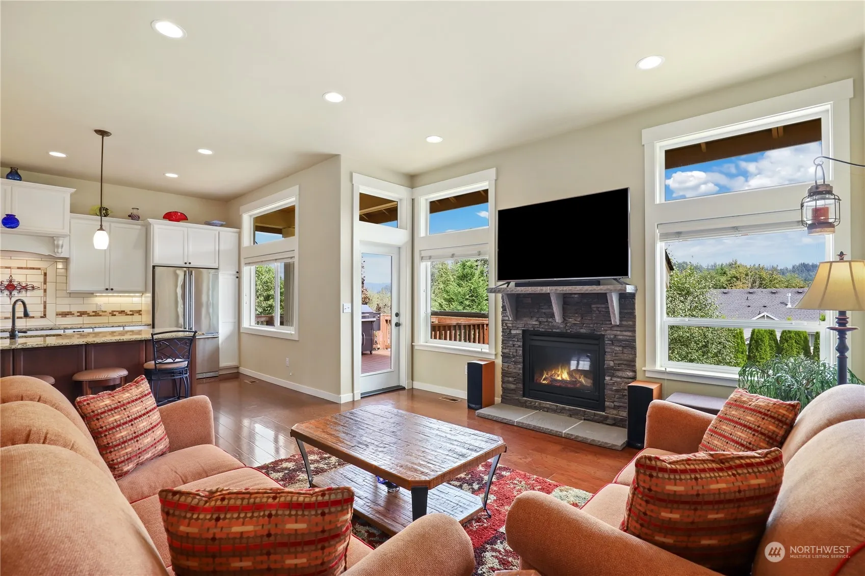 Beautiful home inside and out lives like a rambler with main level primary suite and laundry! Formal dining room and flex/den/office off entry; open design living/casual dining off gourmet kitchen w/slab granite counters, center island, bar seating for 5, full height backsplash w/both gleaming white & nutmeg finish cabinets, SS appliances including induction cooktop. Primary suite w/attached WIC + 5-pc bath w/tile floors + tub/shower surround. Lower level great rm w/2 walk in closets, 2 guest bedrooms & full guest bath. Entertainer’s delight backyard w/deck, patio, firepit, garden boxes, greenhouse, 10′ x 12′ outbuilding and extra parking behind gate.! A/C, coveted hilltop neighborhood/development is minutes to 410 for an easy commute.