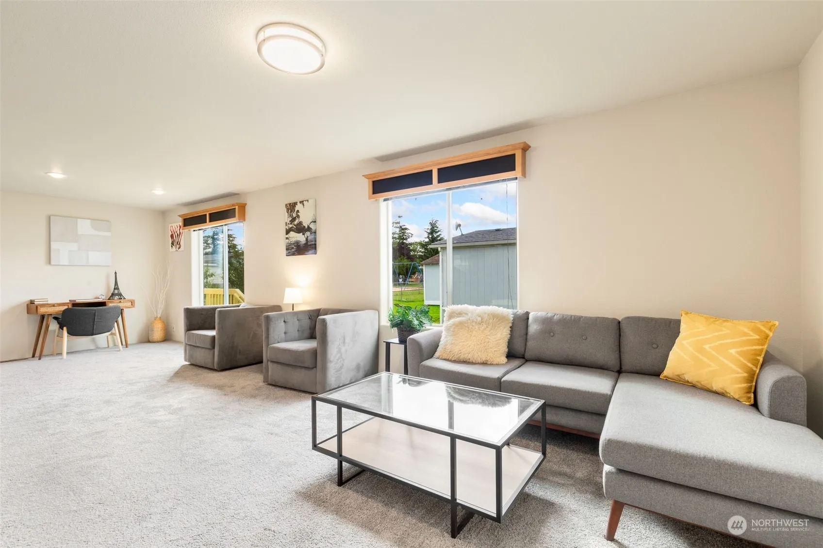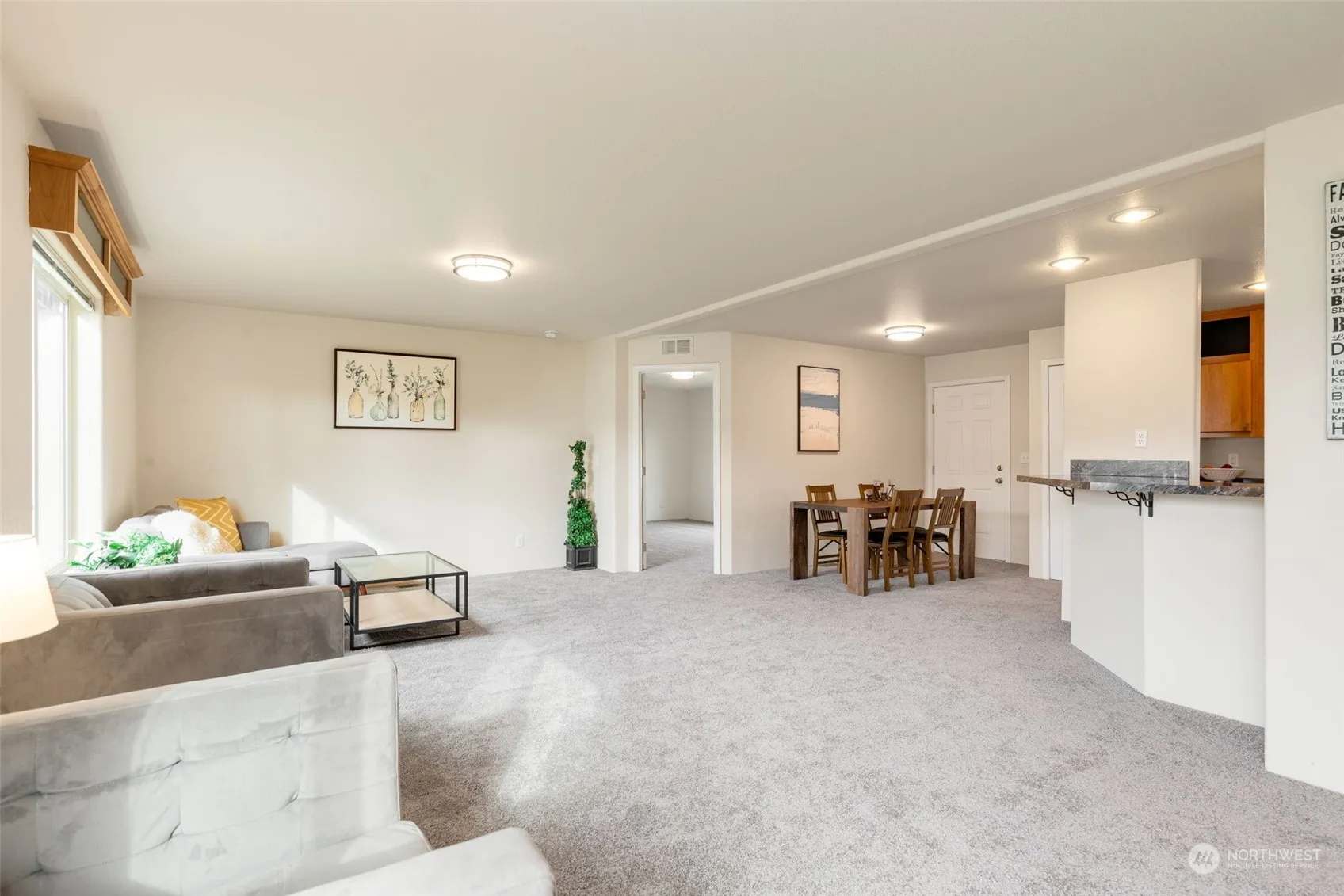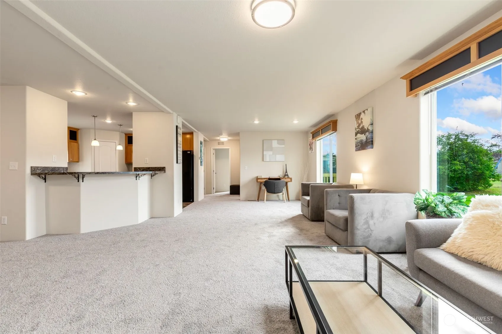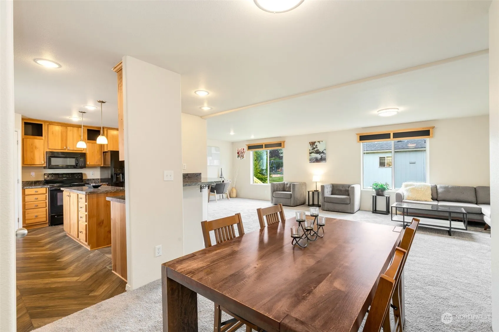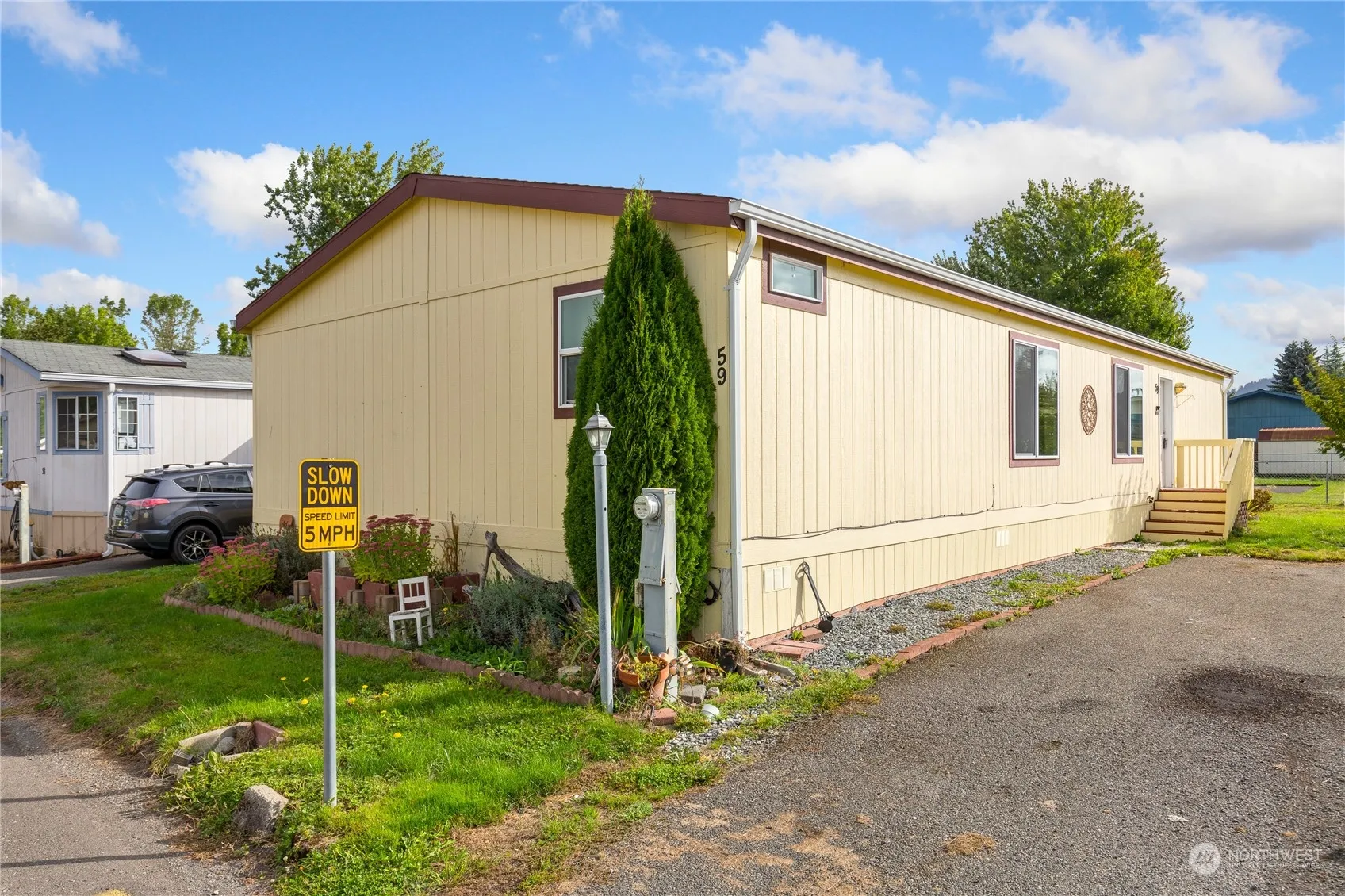 Welcome Home to Meadowbrook ALL ages mobile home park in the heart of Buckley! This is a well cared for community with a playground, picnic area and RV parking! This light and bright home has 3 spacious bedrooms, two full bathrooms and a utility room with washer and dryer. The spacious floor plan is great for entertaining and the large Primary Bedroom features a private bath and large walk in closet. This lovely home has a kitchen island, eating area that includes a bar, a large open living room, two entrances, new carpet and has been freshly painted inside and out! Close to shopping, schools, restaurants and more!
