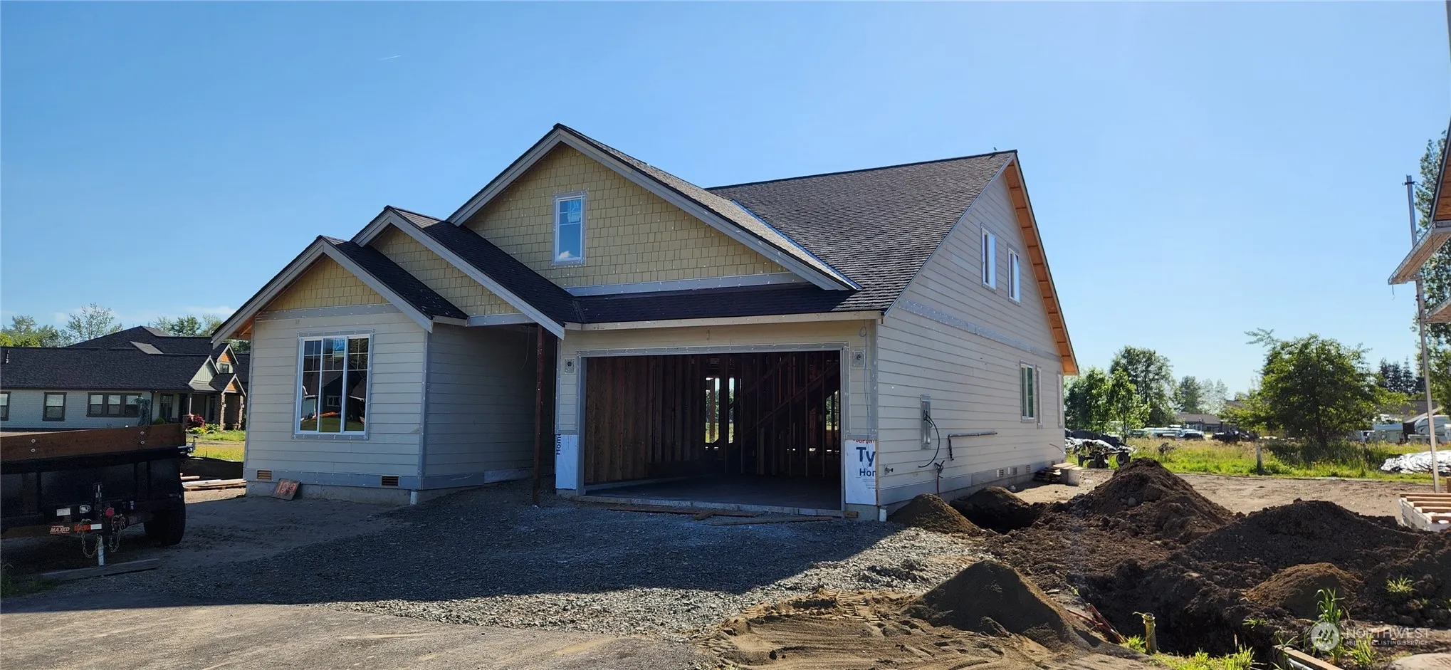 Perfectly located new construction w/ beautiful foothill & partial Mt Rainier views! 2,470SF, 4-bedroom plus bonus and 3 full bath home on a 8,659SF lot w/ RV parking. Thoughtful floorplan & finishes throughout w/ primary suite on the main, free-standing tub, tile wainscoting, custom tile shower, walk-in closet & tile floors. LVP flooring throughout the main floor & well-appointed kitchen w/ gas cooktop, huge island w/ bar seating, & unobstructed views from the South facing kitchen window. Vaulted living room w/ 60″ gas fireplace insert & cultured stone accents. 1 bedroom, a full bath and lg. bonus room up. Forced air heat pump & AC. Landscaping, fencing & front yard sprinkler system w/ stub for extension included.