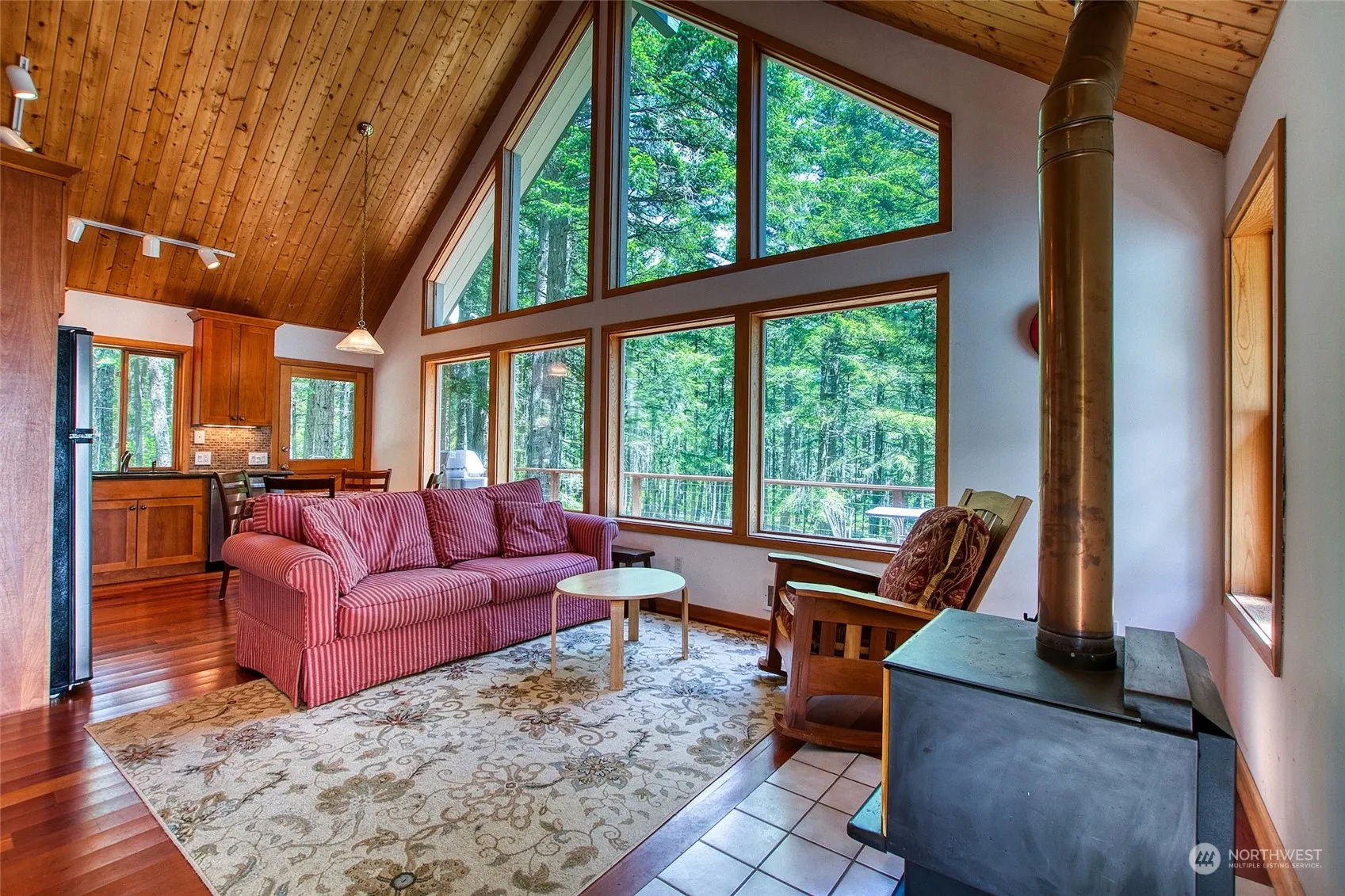 Ideal cabin across the street from Moran State Park and Cascade Lake. Stroll around the corner to the back trail leading to the lagoon and continue on into the park from this access. Near Rosario Resort, marinas and owners enjoy use of the outdoor pool and recreation areas. A-Frame style was completely remodeled/updated in 2010 with open great room warmed by a wood burning stove, 2 bedrooms and a full bath on the main floor, upstairs is a spacious loft for an office or more sleeping space. Epe wrap around deck w/ southern light filtered through evergreens. Detached garage has space for a car plus recreational gear. Low maintenance landscaping has potential for a garden. Well maintained and possible to purchase turn-key to enjoy the season.