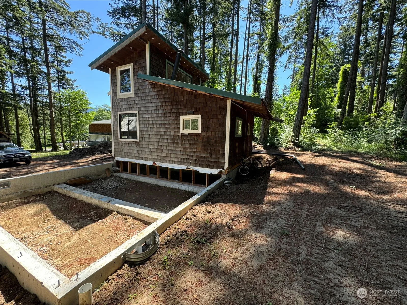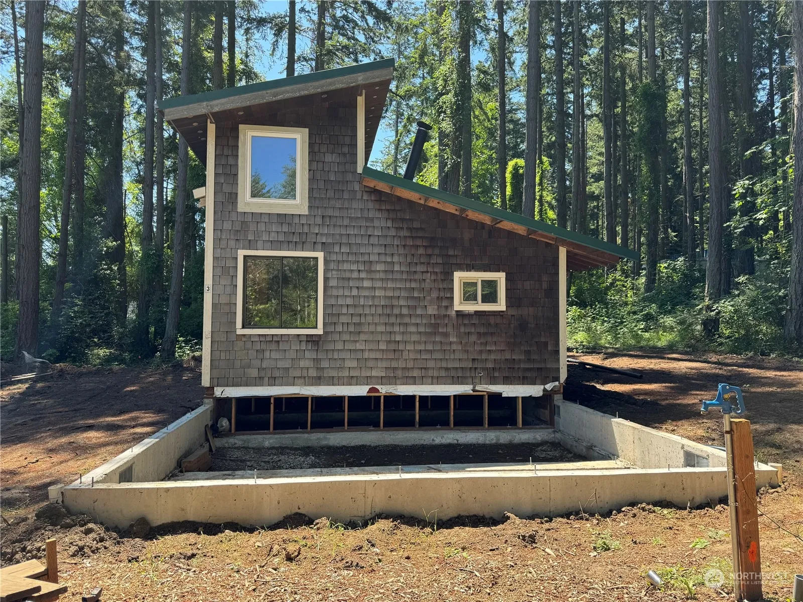 Excellent residential opportunity! Level .17 acre lot near Eastsound Village with the beginnings of a starter home. Existing cabin was moved and settled on the permitted foundation and just needs to be completed. Either finish the existing cabin and enjoy, or complete the permitted 3 bedroom permitted house plans. Situated nicely for a potential ADU. Eastsound Water on the property. Eastsound Sewer membership paid, but facility fee needs to be paid and tanks installed. Fiber to the property. Great location with nearby public waterfront park, schools and village amenities. Subject to BLM recording.