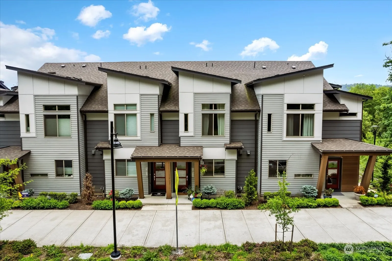 Privacy, views of nature &plenty of natural light in this contemporary townhome. Designer elements shine in this spacious floorplan. Entertain w/quartz counters, kitchen island &dining area. Covered balcony off the living room features one of the best views in Riva, sited in a quiet spot. Relax&enjoy the green space &park steps away. The upper floor features a primary suite &guest room w/adjoining bath. Enormous top floor has room for a home office, workout room &much more. Thousands of dollars in upgrades, including extended hardwood floors throughout &custom closets. 2-car garage w/storage &easy in/out access. This desirable location is just steps away from DT Issaquah, parks, miles of walking trails, shopping &dining. A commuter’s dream!