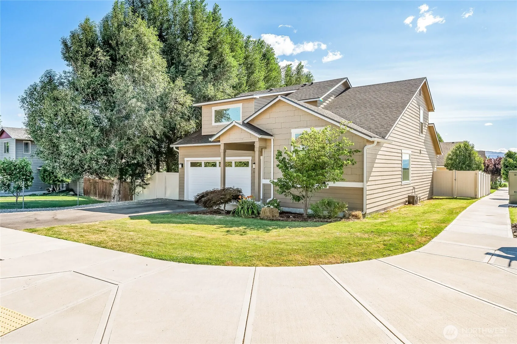 Nestled on a quiet corner lot in Wenatchee’s coveted south end, this 4-bed, 2.5-bath home offers 2,213 sq ft of light-filled living space. Vaulted ceilings, large windows, and an open-concept layout create an airy feel throughout. The kitchen features granite counters, stainless steel appliances, and a spacious island—perfect for entertaining. The main-level primary suite adds comfort and convenience. Cozy up by the fireplace or relax on the patio with views of surrounding hills. Built in 2017 and move-in ready with a fully fenced backyard and 2-car garage.