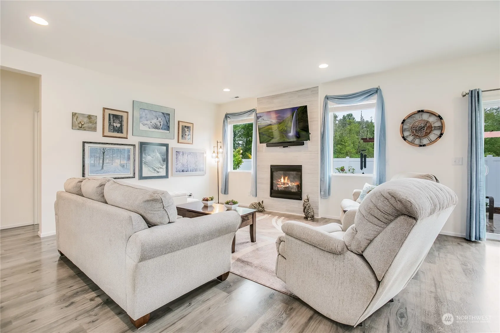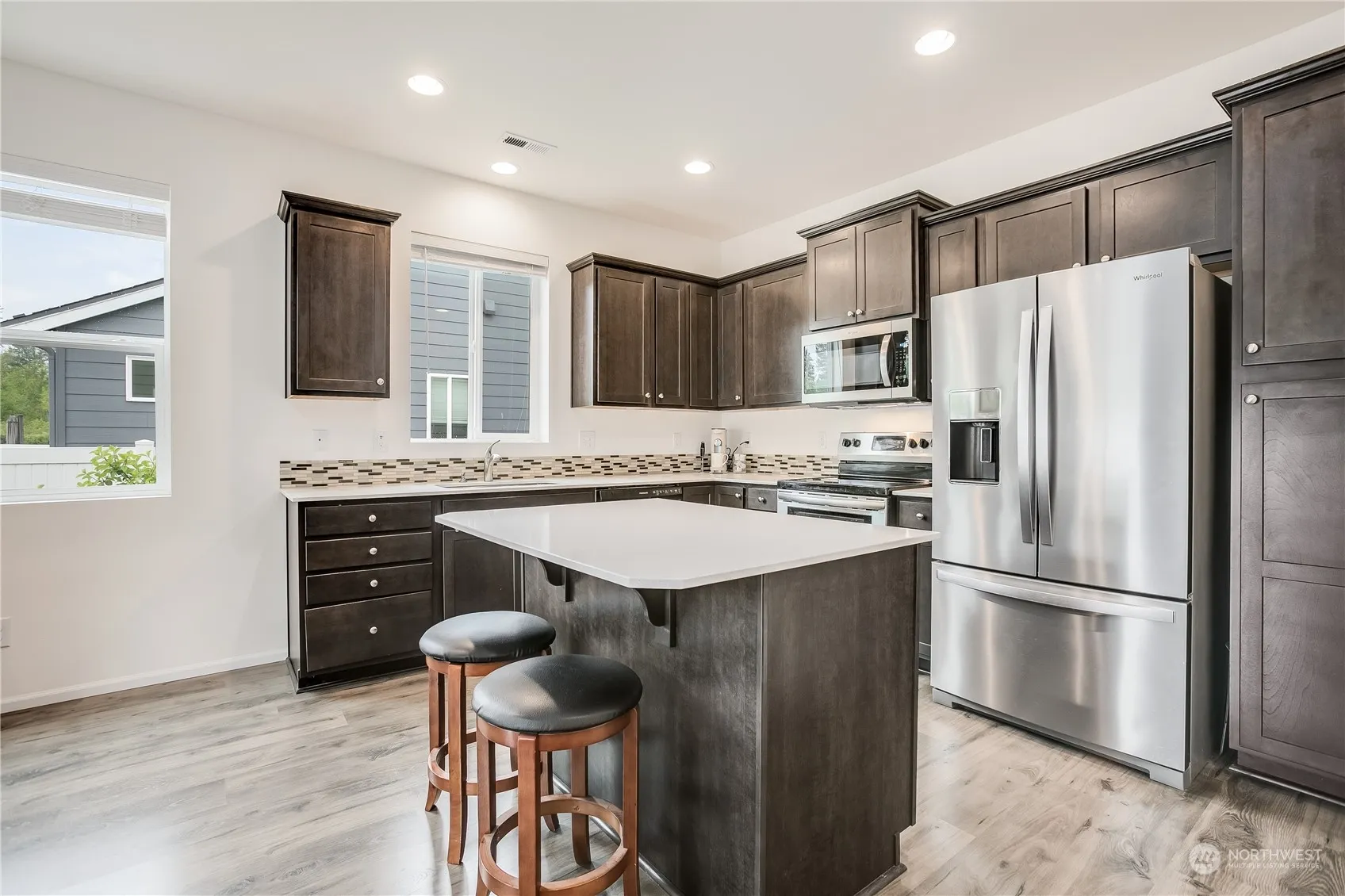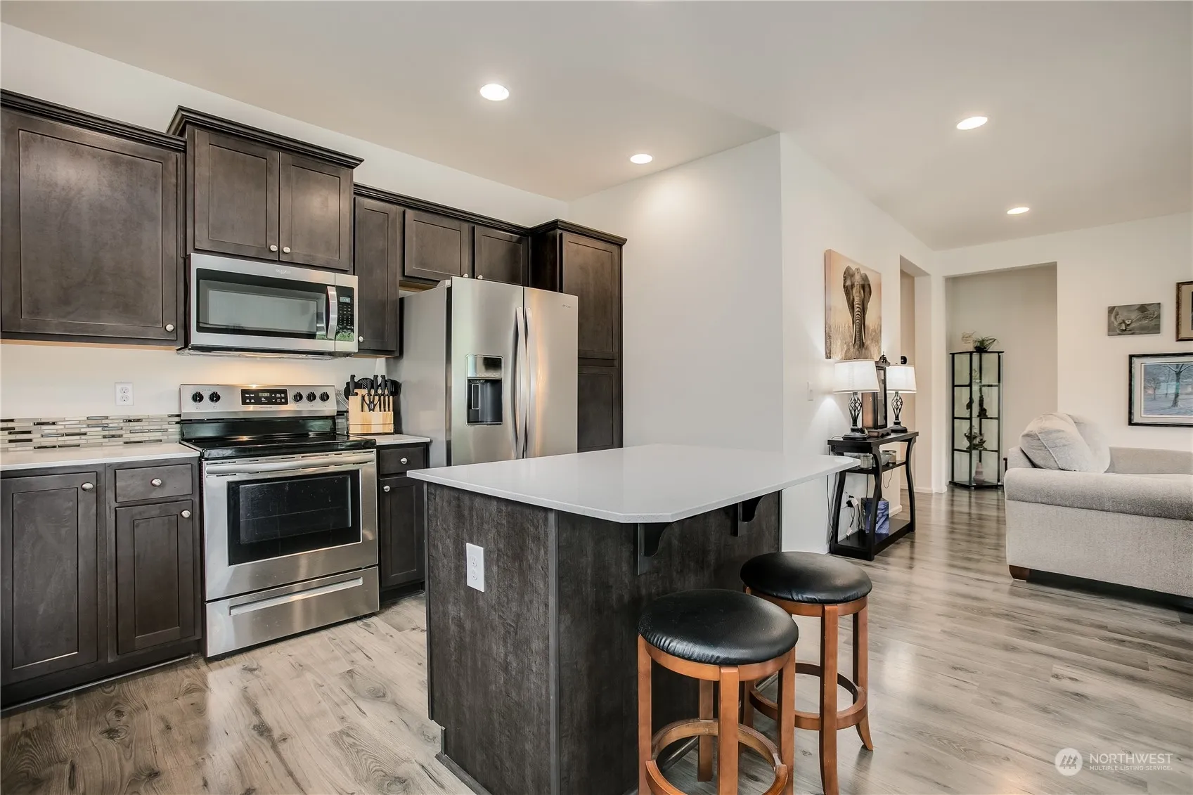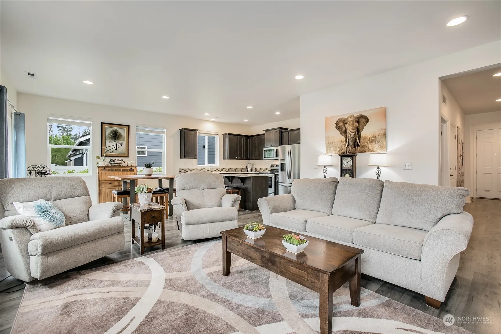 Stunning 3 bed 1.75 bath rambler in coveted Majestic View estates. Situated on one of the best lots in Majestic View, that backs up to a green belt for added privacy. Light & bright with fresh interior paint. Textured laminate flooring leads to the open concept kitchen, complete with sleek quartz countertops, tile backsplash, pull out shelving, & SS appliances. Primary bedroom has an attached ensuite bathroom, & walk-in closet. 2 additional rooms. Stay cool all summer with AC. Out back enjoy the stunning landscaping & calming water feature. Sprinkler system in the front & back of the home. Additional features include, epoxy floor garage with touchpad code, tankless hot water heater, community pool, work out room & rec room.