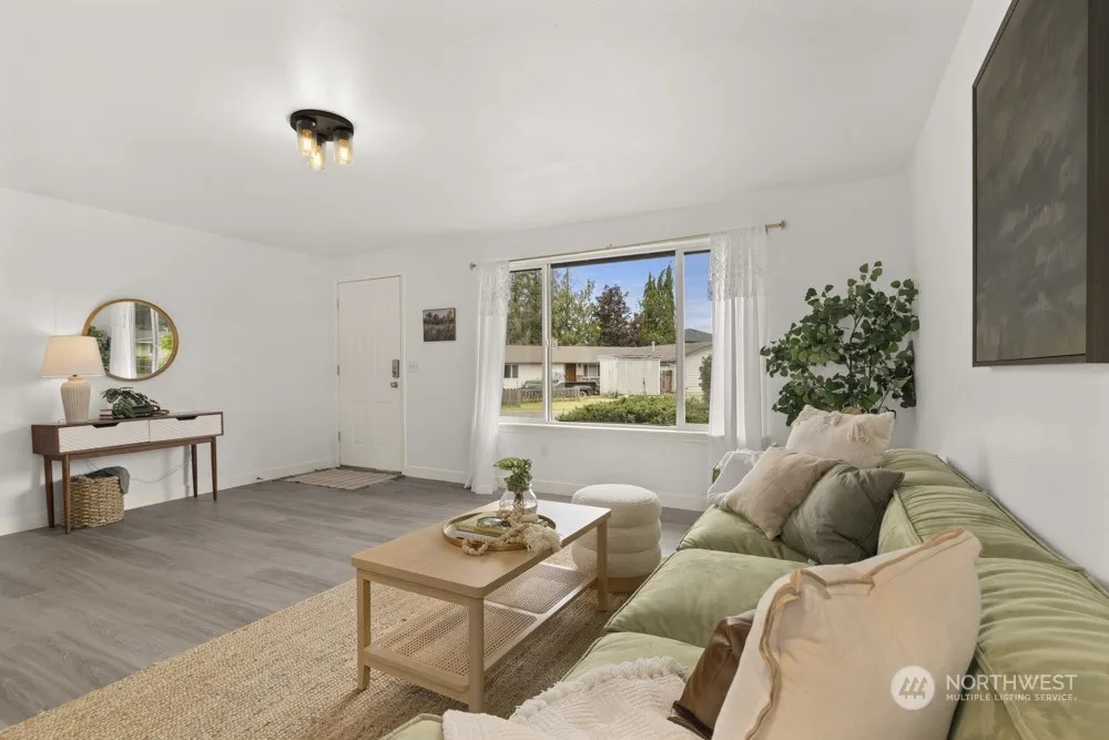Welcome to the heart of Orting, where small-town charm meets modern convenience. This single-story gem is ideal for first-time buyers, investors or those looking to downsize without compromising on quality or space. Versatile open floor plan, 3 generous sized bedrooms & a full bath, this home ensures comfort & functionality for everyone. New laminate flooring, stylish light fixtures and fresh paint creates a warm, inviting atmosphere. The highlight? A massive 3-car detached shop with room to tinker! The large, fully fenced lot features a covered patio and peek-a-boo mountain views, making this the perfect place for relaxing weekends. Enjoy the peace & quiet of the neighborhood, yet blocks from downtown shops, eateries, schools & parks.