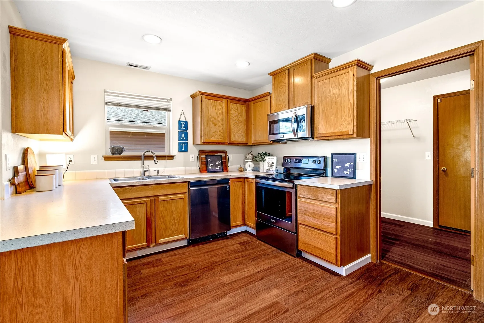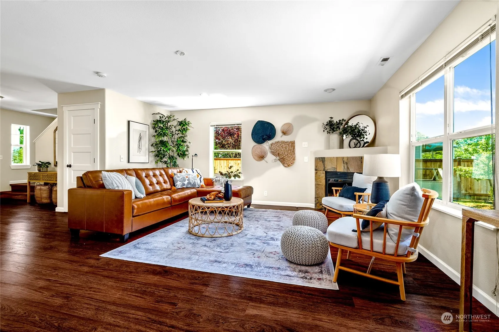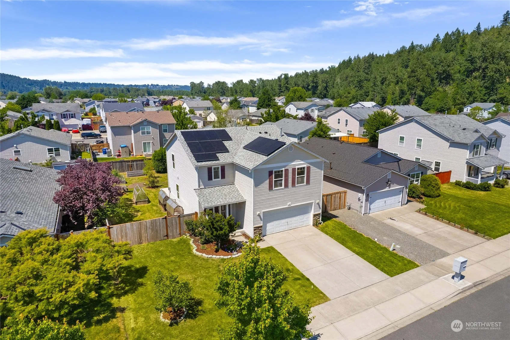 Welcome to this turn-key 4-bedroom, 2.5 bathroom home nestled in the picturesque Orting Valley. Featuring luxury vinyl plank flooring throughout the main level & new carpet in the bedrooms. Entry foyer leading to the spacious & inviting main level living areas. Cozy up to the gas fireplace in the living room overlooking the fully fenced backyard. Dining room with slider door & open kitchen with huge pantry! Upper level boasts a loft/bonus space & separate laundry room. Oversized primary bedroom w/walk in closet & newly remodeled bathroom, providing a private retreat within the home. Newer 50 year roof and solar panels, Central A/C, newer furnace, RV parking & so much more, located close to schools, town, parks & trails.