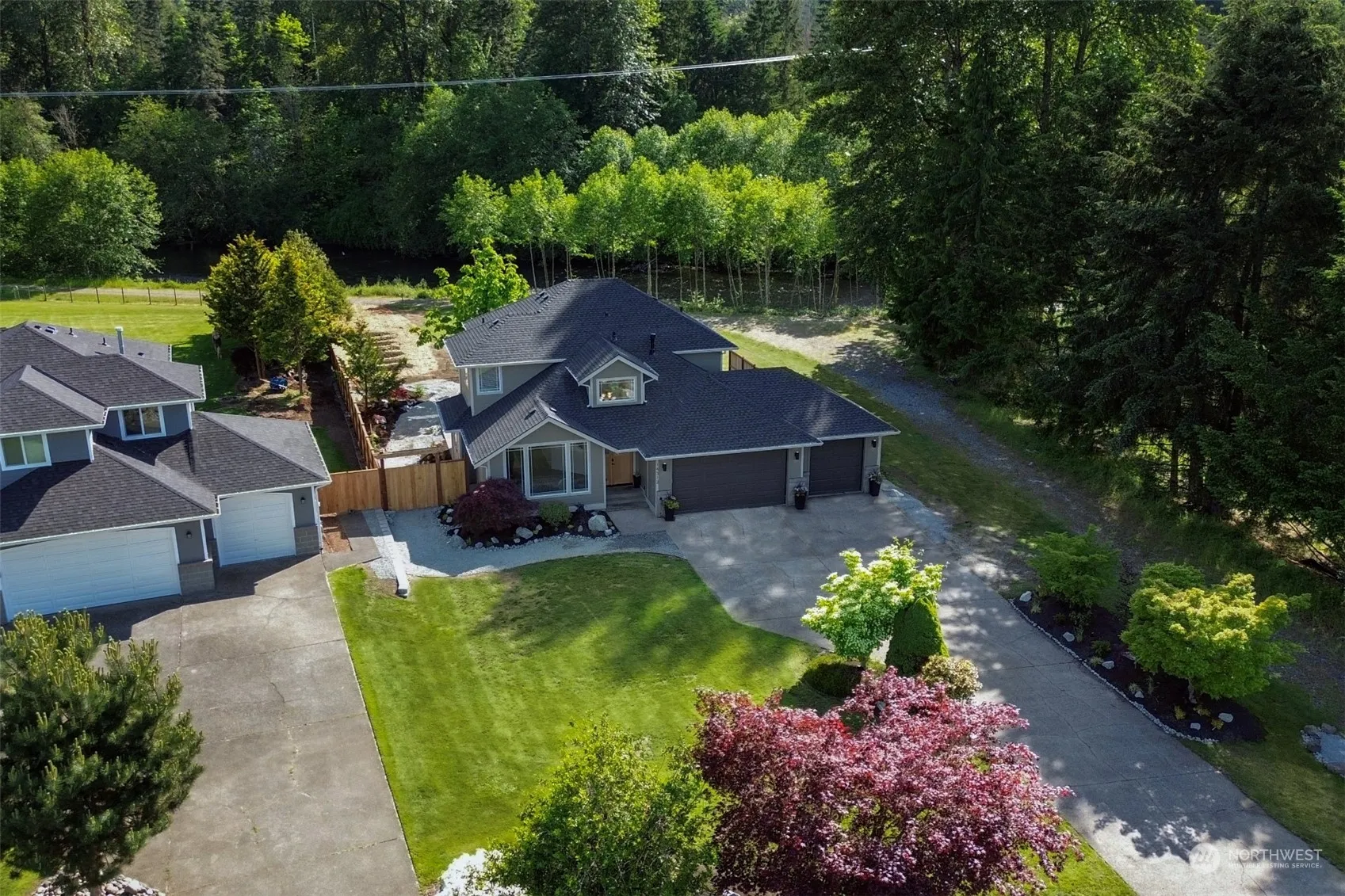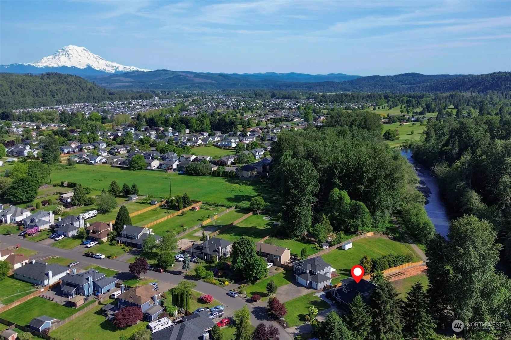 Experience serene living by the Puyallup River in this extensively updated home, where each exquisite detail is curated to enhance your lifestyle. Wake up to breathtaking views of Mt. Rainier & soothing sounds of nature in this tranquil sanctuary w/ a spacious layout designed for comfort. Enjoy a chef’s kitchen w/ SS appliances & ample space for culinary adventures. The expansive patio & landscaped grounds invite endless possibilities for outdoor entertaining & relaxation. Located in Riverbend Estates, just steps away from fishing, scenic trails & High Cedars Golf Course. The perfect choice for those who cherish a small-town feel w/ convenient access to amenities. Embrace a life of peace & privacy in a community that harmonizes w/ nature.