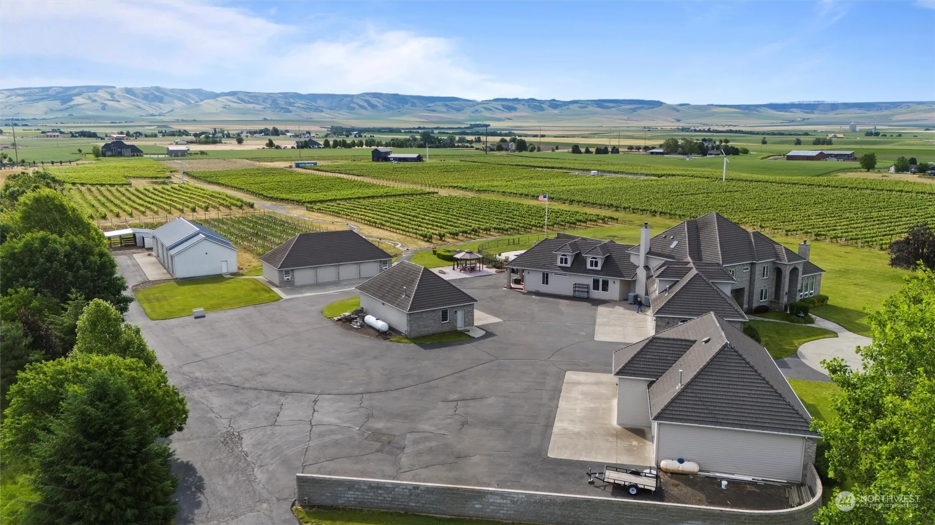 You’ll pinch yourself every time you take in the views! And imagine the possibilities! Residence, vacation rental, winery, corporate retreat, art studio? Located at the epicenter of Walla Walla’s Southside of 20+ wineries, this 16-acre spectacular estate is the Walla Walla living at its finest! The 5 bed/5 bath home features a grand foyer, curved staircase, 3 fireplaces, formal living & dining room plus casual living areas and primary suite on the main. Upstairs, a second primary suite, additional bedrooms plus an exercise room. Large in-ground pool and massive patio built for pool parties! Four garages w/14 bays incl. RV. Estate incl. 8 ac vineyard, setup for livestock, irrigation well, farm equip & water rights. Ultimate Walla Walla!