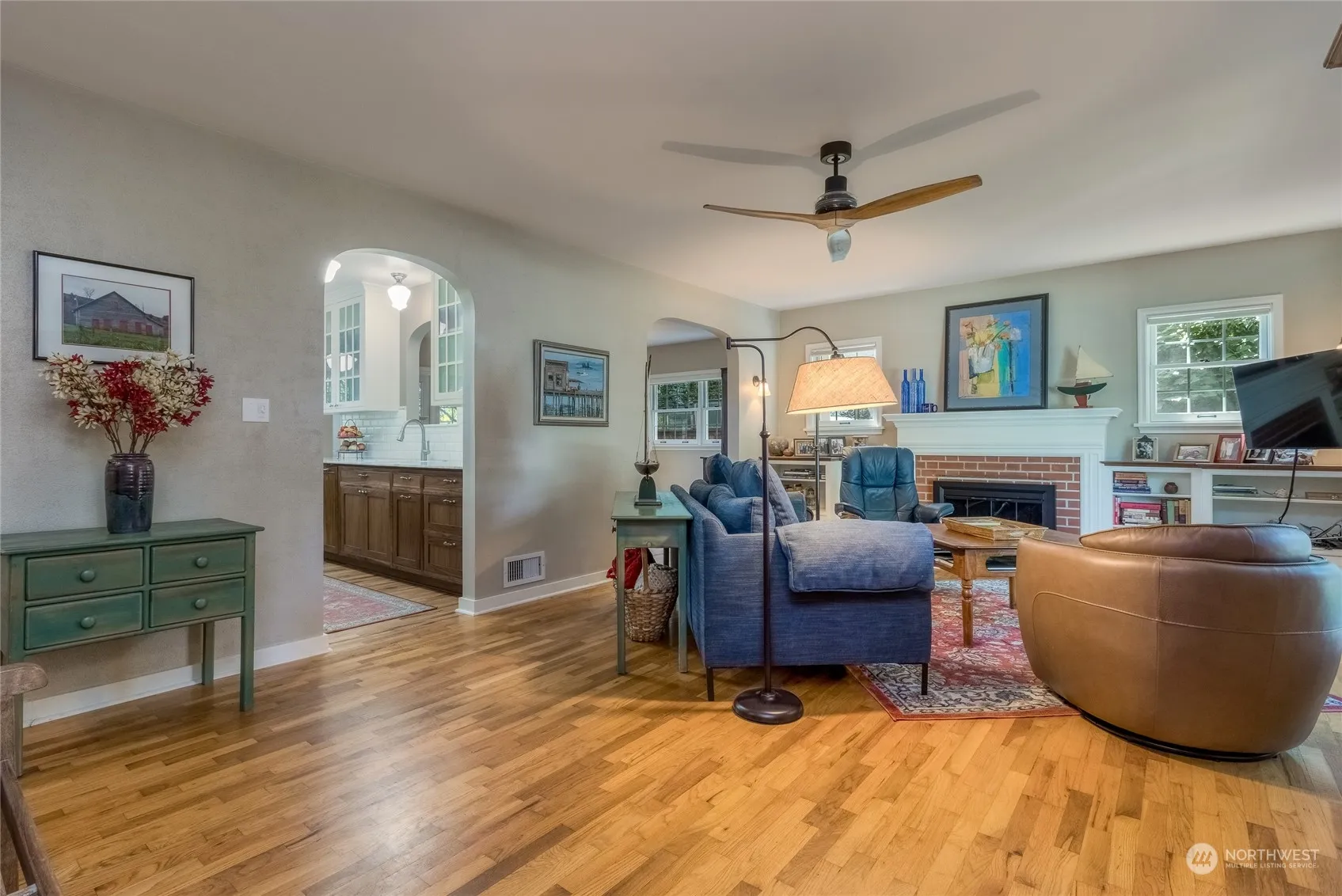 Welcome to your ideal retreat! Nestled in a serene & highly sought-after neighborhood, this cottage offers modern comfort & classic charm. Boasting a renovated kitchen w custom cabinetry, marble countertops, backsplash, & high-end appliances. Inviting living room featuring a gas fireplace w built-ins, gleaming hardwood floors throughout the main level. Abundant natural light highlights the home’s tasteful updates & detail. Charming kitchen nook overlooking the beautifully landscaped yard, a perfect spot for morning coffee. Spacious primary bedroom provides a tranquil retreat, large closet, tiled shower, & LVP flooring. Versatile craft room provides ample space for hobbies or office. Fully fenced oasis backyard boasts a serene water feature