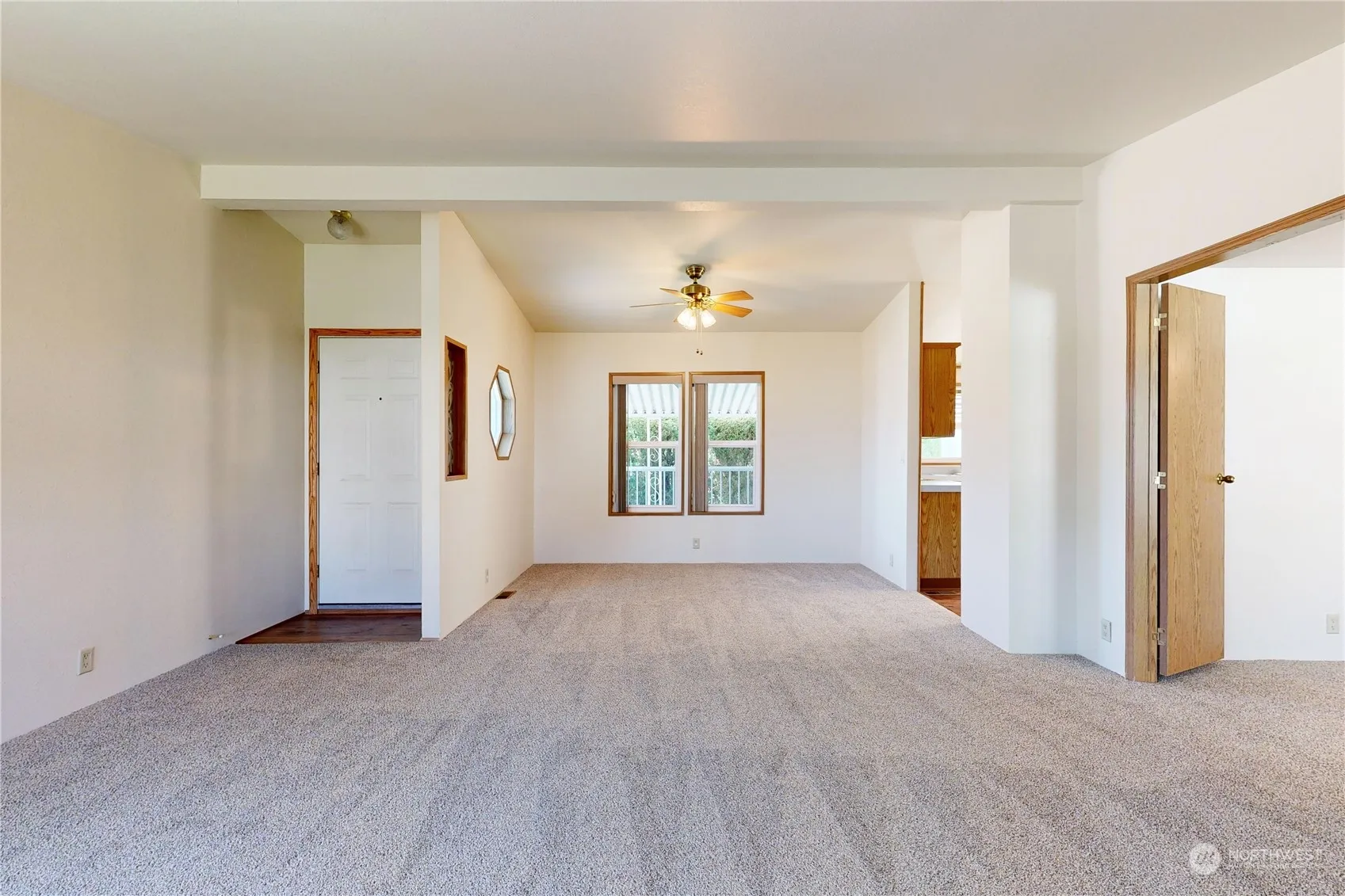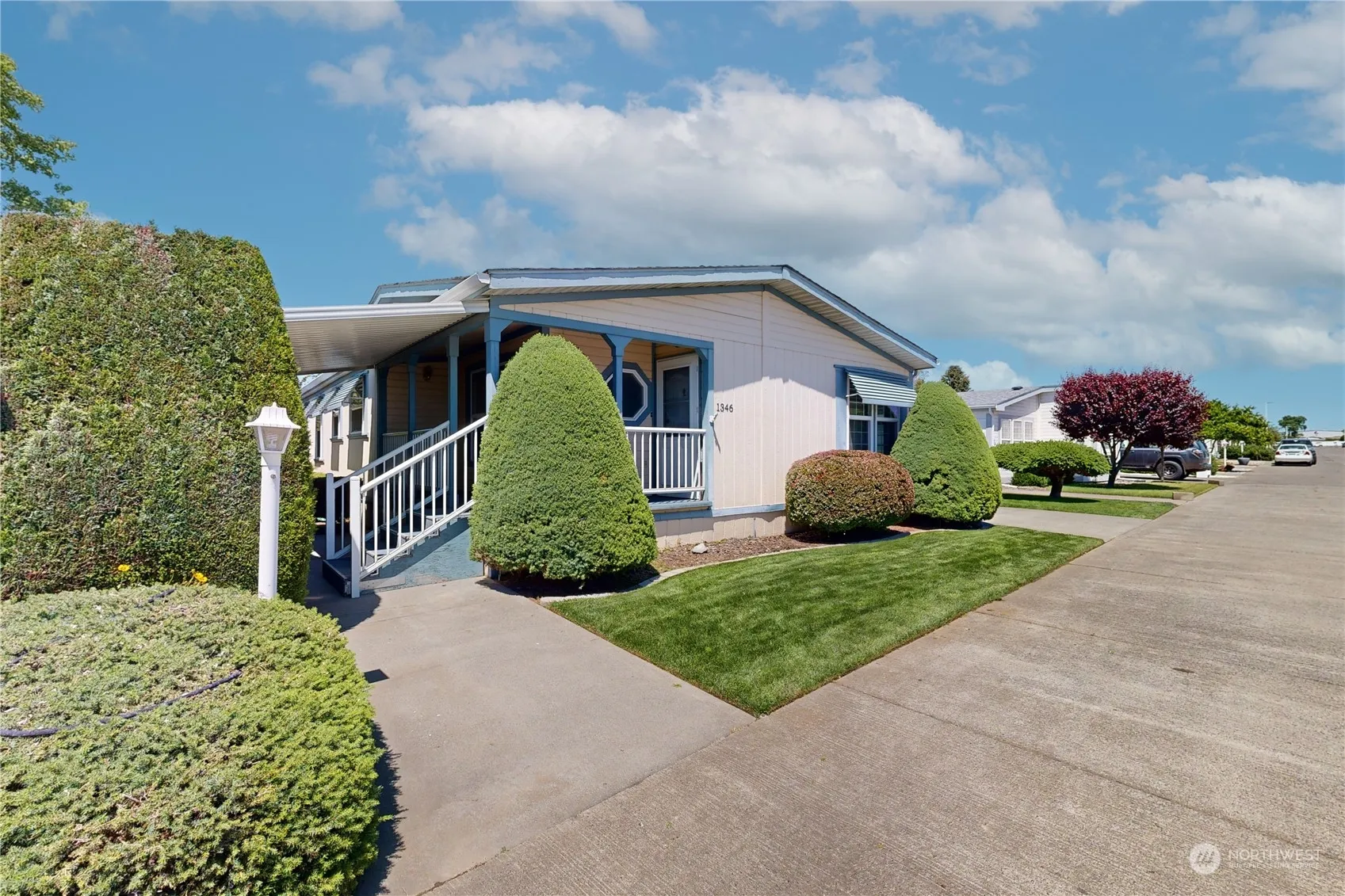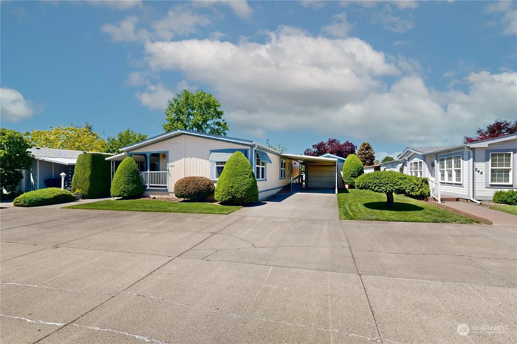 Welcome to peaceful living in Rancho Villa! This well-maintained 3 bed 2 bath manufactured home greets you with newly installed LVP flooring, new carpeting, and a freshly painted interior. The kitchen features plenty of cabinet space and enough room for a dinette in addition to the formal dining area. Jetted soaking tub and separate shower in the primary ensuite. Make the third bedroom into a great home office, craft room, or reading nook. The laundry includes a utility sink and additional cabinet/counter space for convenience. Enjoy serene moments on the covered front porch or relax by the creek that flows through the backyard. A detached garage, covered carport, and underground sprinklers complete this lovely home!