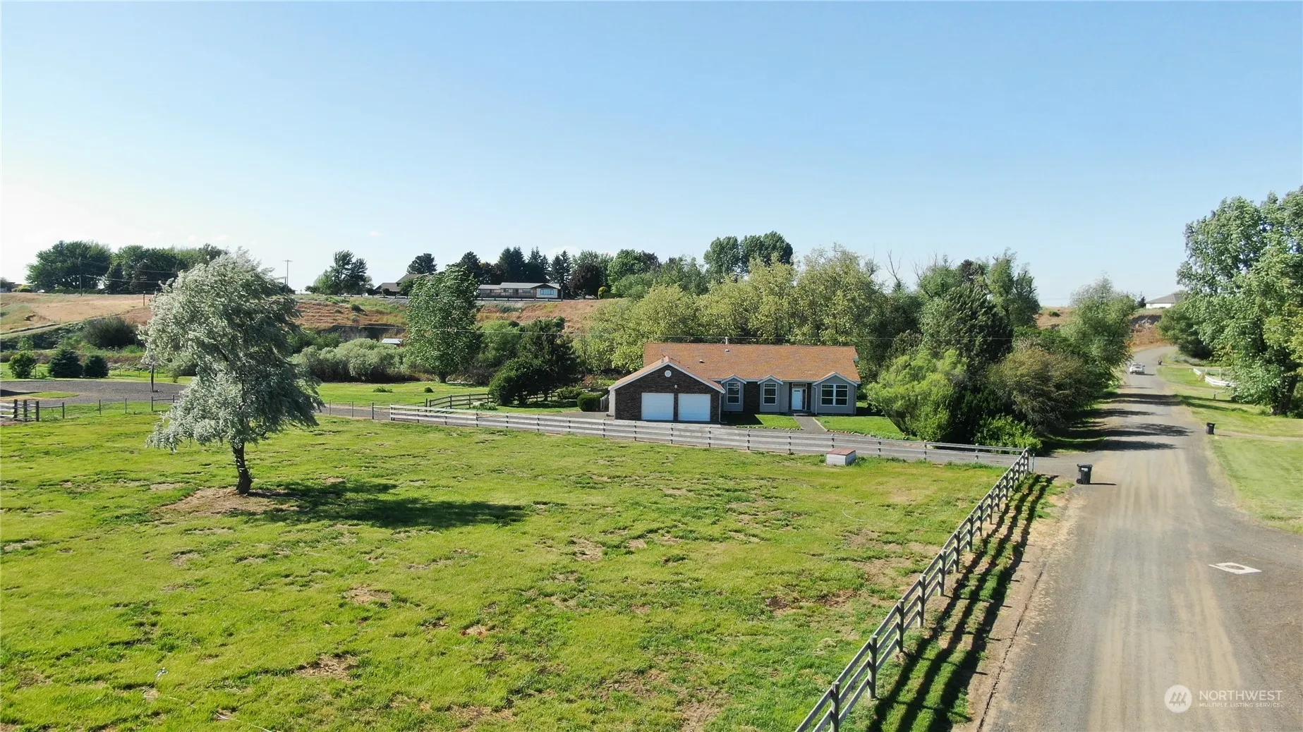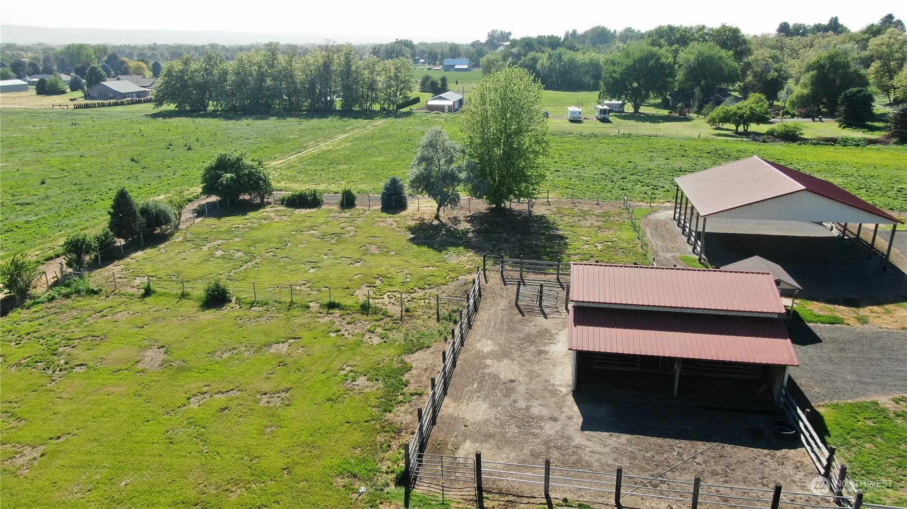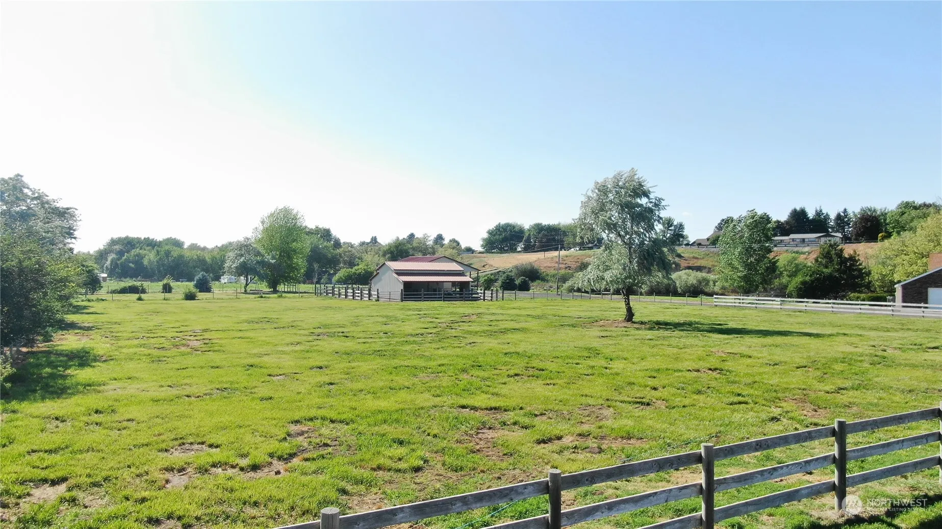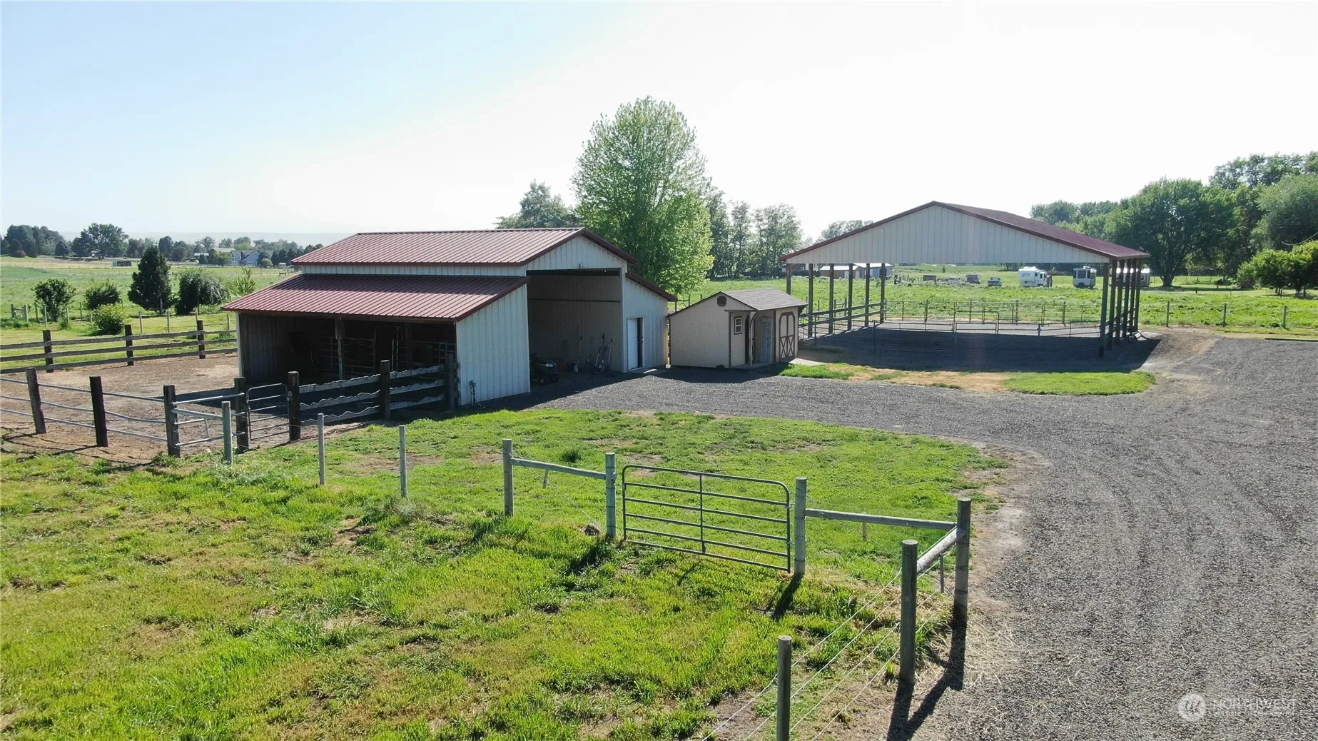Don’t miss out! This oasis has much to offer. The 3 bedroom/2 bath manufactured home includes an open floor plan with a large kitchen, walk-in pantry and views every direction. The property has room for you and your furry family. There are lush, green, fenced pastures. Also includes a barn with stalls and hay storage, a covered arena including lighting, a small potting shed, mature landscaping and so much more. Property includes water rights.