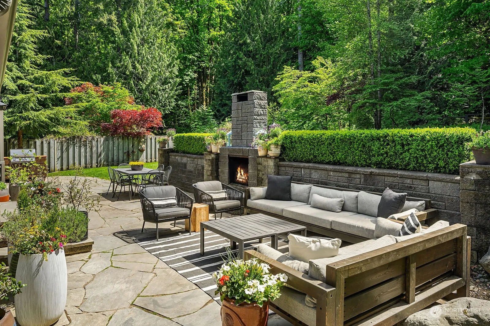 This extraordinary residence sits atop Squak Mountain and boasts a comprehensive remodel with an obvious attention to detail throughout. Recent updates include new hardwood floors, new Anderson 100 Series Windows, 50 year CertainTeed Landmark roof, 3 beautifully remodeled bathrooms plus a gourmet chef’s kitchen that is a showpiece featuring stainless steel Viking and Bosch appliances. The private, fully fenced and sun drenched 16,200 square foot lot (.37 acre) features a memorable outdoor wood burning fireplace that is the centerpiece for this tranquil setting and includes an entertaining sized flagstone patio, significant level lawn space and backs to acres of protected green space.